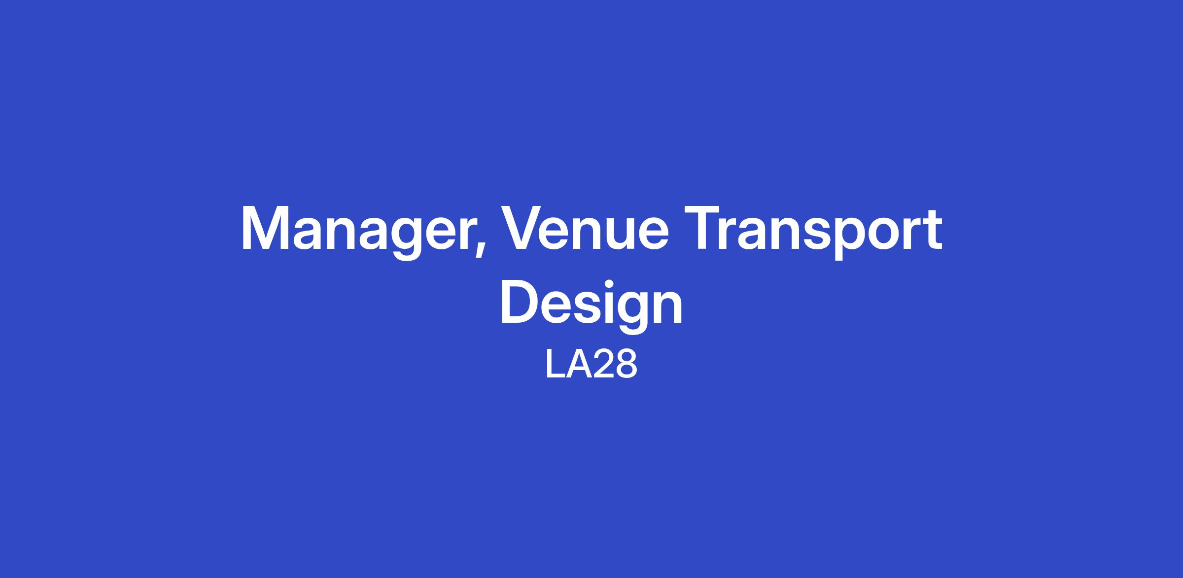 The ideal candidate will be proactive, strategic, and highly organized, capable of operating with autonomy while coordinating across multiple Transport subfunctions. The Manager, Venue Transport Design will report directly to a Senior Manager or subfunction Director of Transport and work closely with leaders across LA28’s Functional Areas.