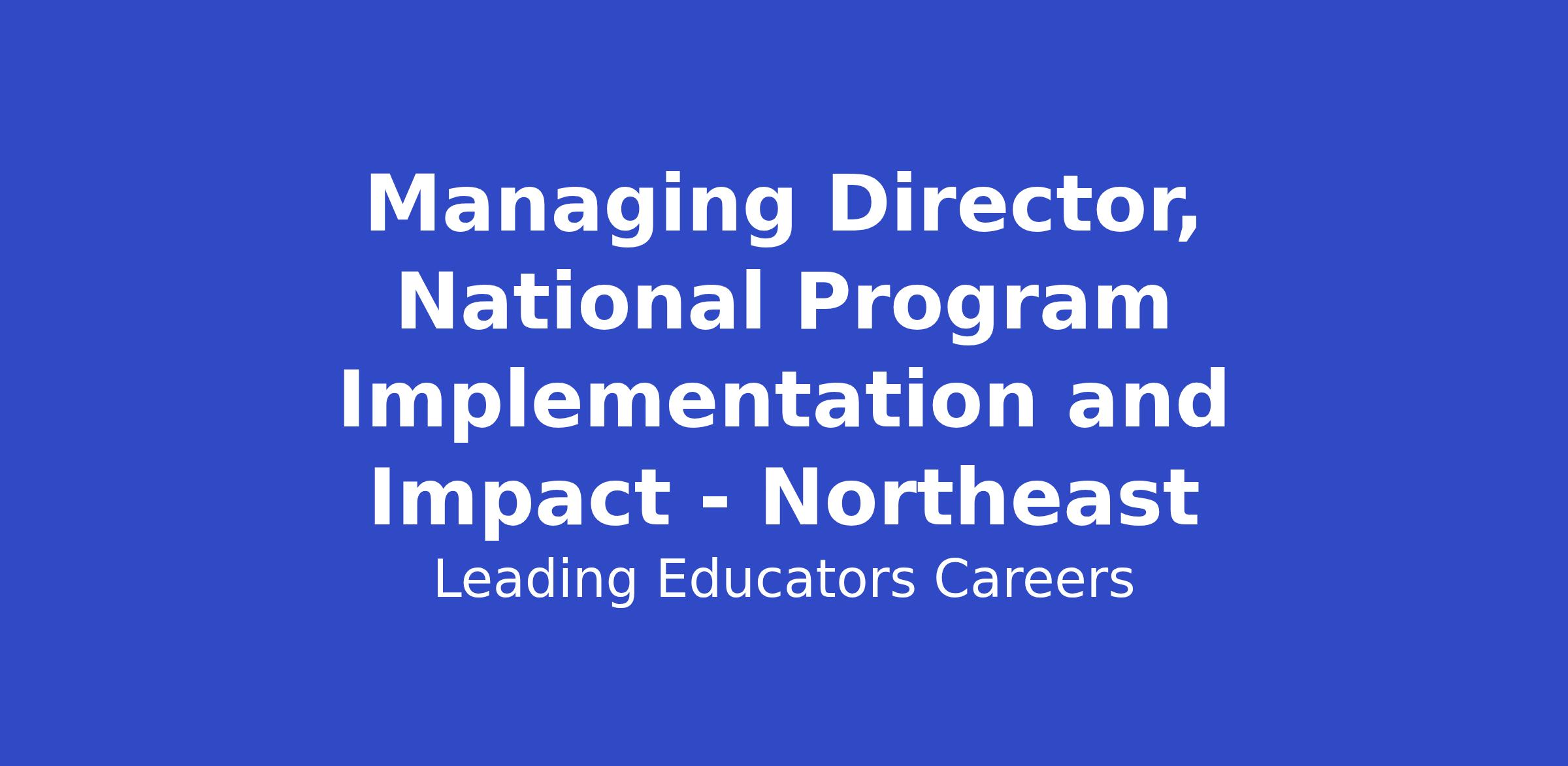 The Managing Director, National Program Implementation and Impact is a strategic leadership opportunity for an experienced education leader ready to drive excellence in program implementation across Leading Educators' Northeast district partnerships. In this role, you'll manage a portfolio of Senior Directors overseeing eight or more major district projects across the Northeast region, ensuring that each partnership delivers transformational professional learning, systems-level change, and measurable student outcomes.