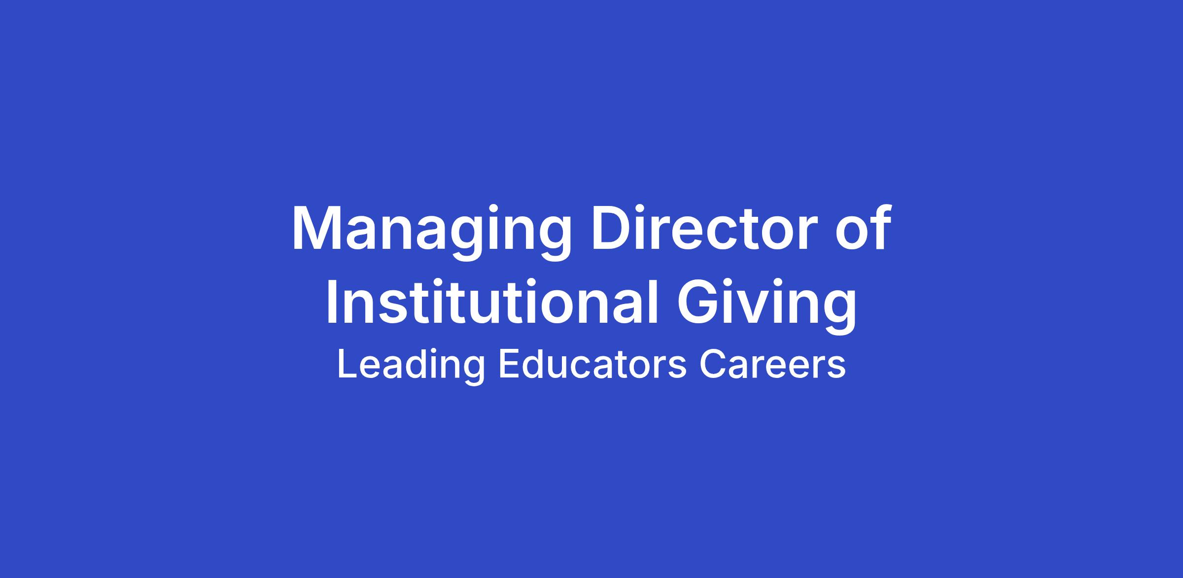 The Managing Director of Institutional Giving is a transformational leadership opportunity for a seasoned fundraising strategist ready to shape the future of Leading Educators' philanthropic impact. In this role, you'll own the vision, strategy, and execution of a multi-million dollar institutional fundraising portfolio, driving both national systems-level initiatives and place-based community investments that directly fuel student outcomes and organizational growth.