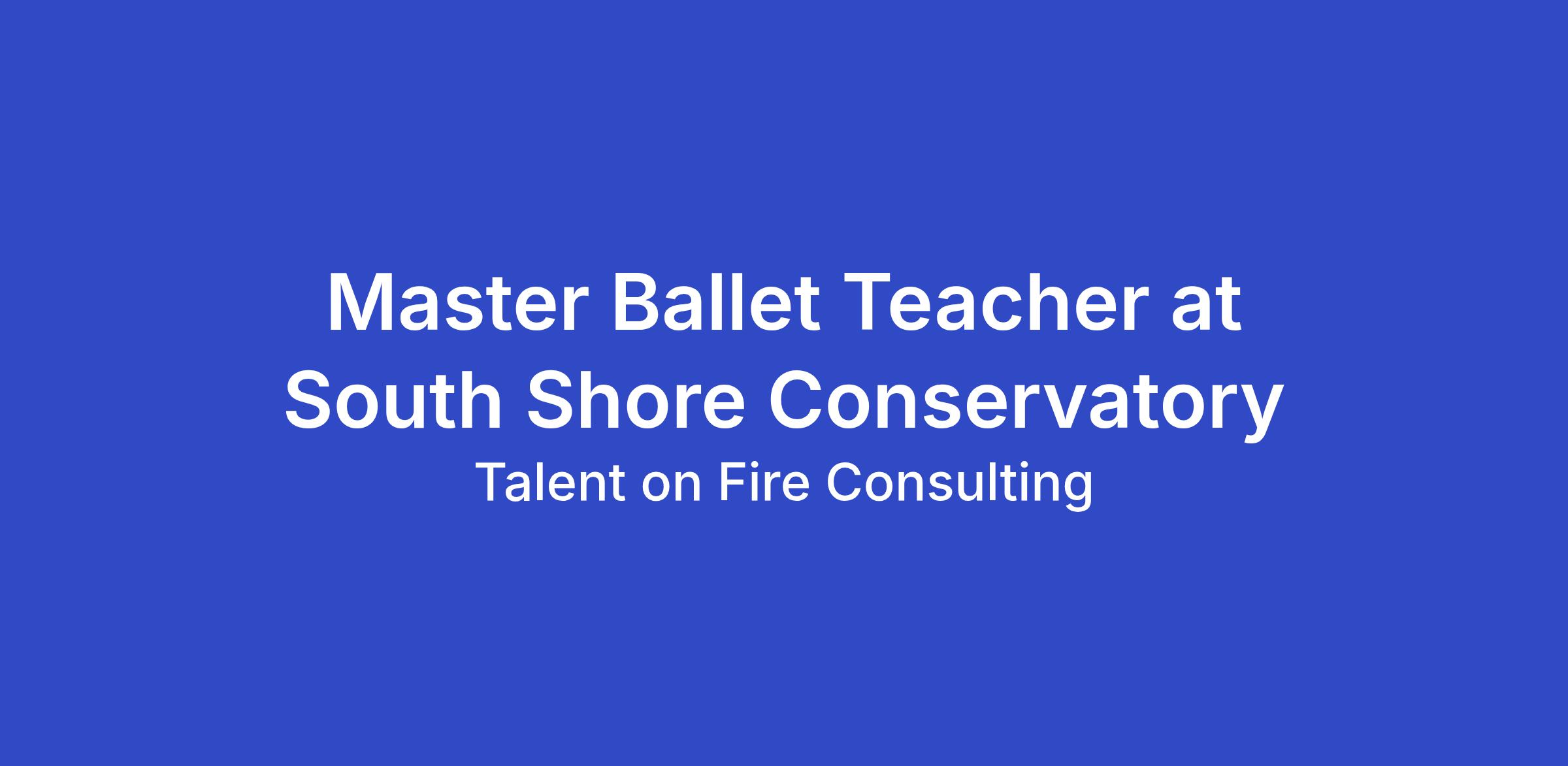 South Shore Conservatory seeks an exceptional Master Ballet Teacher to help strengthen and elevate its dance program through high-level classical ballet instruction rooted in excellent pedagogy, sound technical training, and artistic integrity.