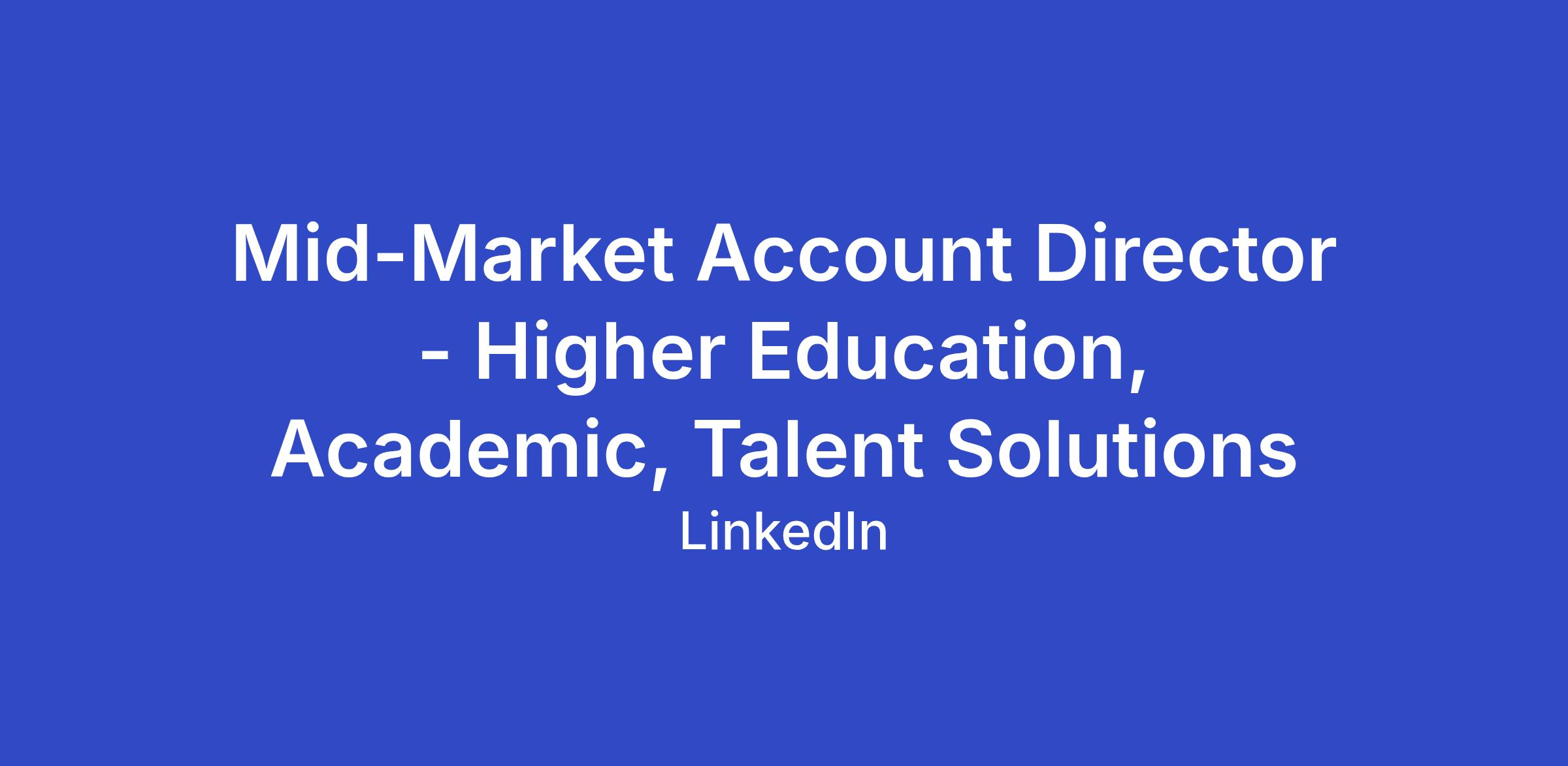 We are looking for a Mid-Market Account Director to join our team as a trusted adviser with a relentless focus on bringing value to our customers within the Academic (K-12 and higher education) sector(s). You will be responsible for helping our customers effectively engage with our solutions (Talent & Learning). You will be dedicated to making our customers stronger and seeking out opportunities for growth. Although you possess a strategic approach to selling and strive to meet/exceed revenue goals, you will always have your clients’ best interest in mind and act as their internal advocate to ensure they are set up for success.