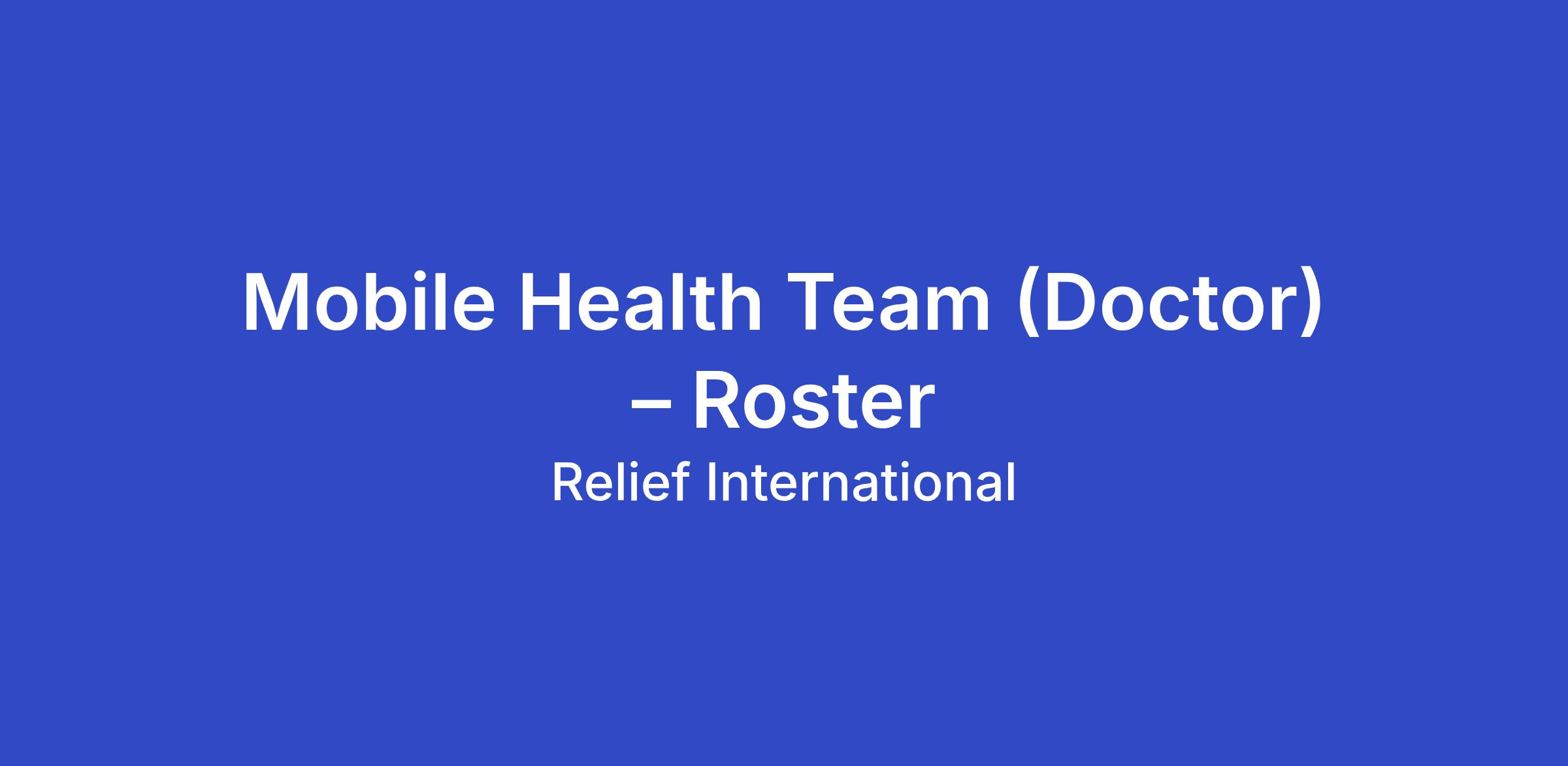 Title: Medical Doctor – Mobile Health Team