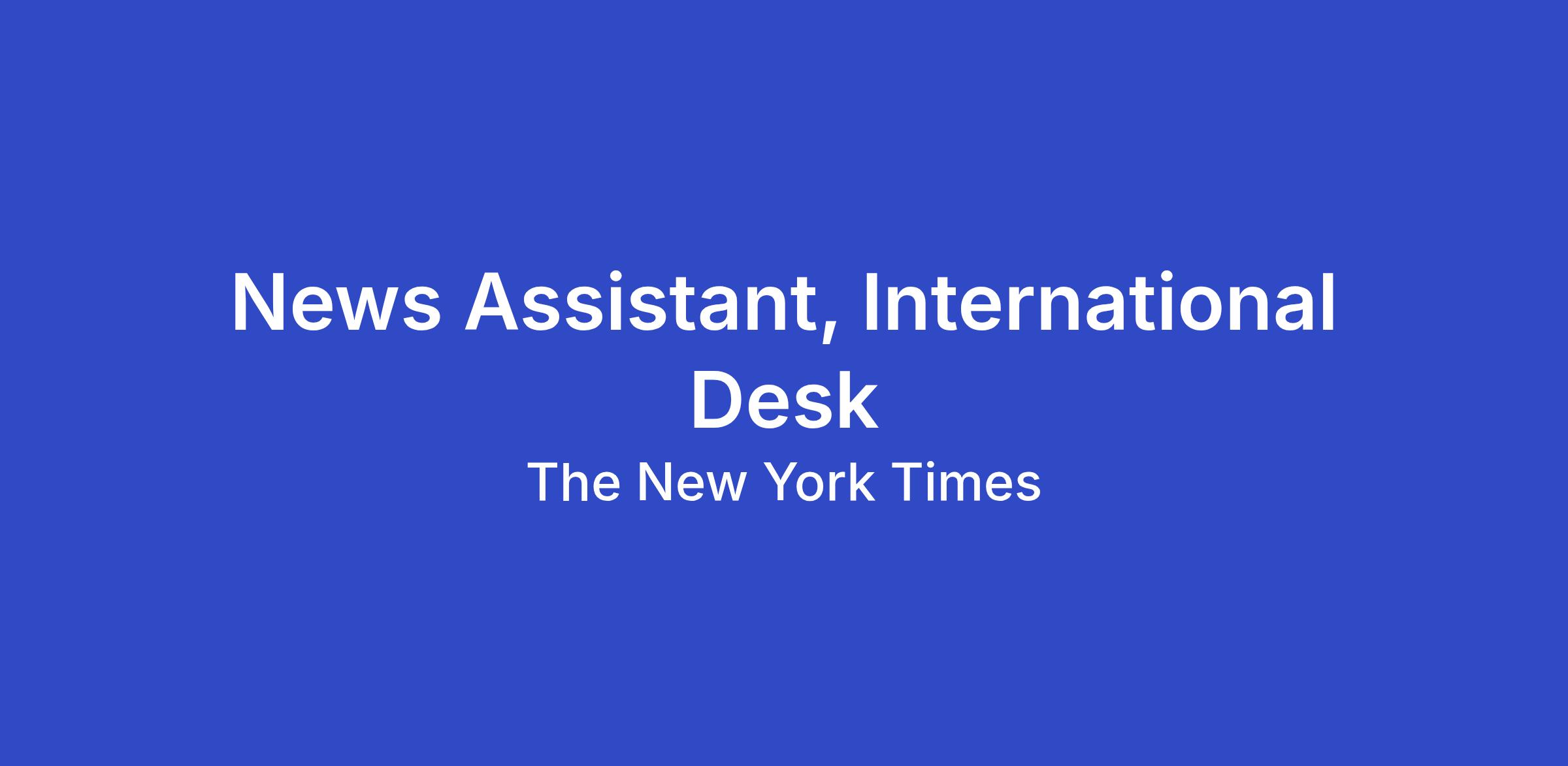 The New York Times Newsroom Operations team is looking for a news assistant to work on our International desk in a support role with varied tasks and responsibilities. You will be an engaged and collegial team member with an interest in news who is able to support reporters and editors across a range of logistical and operational responsibilities. Organization, flexibility and a desire to learn new skills are critical to success in this role.