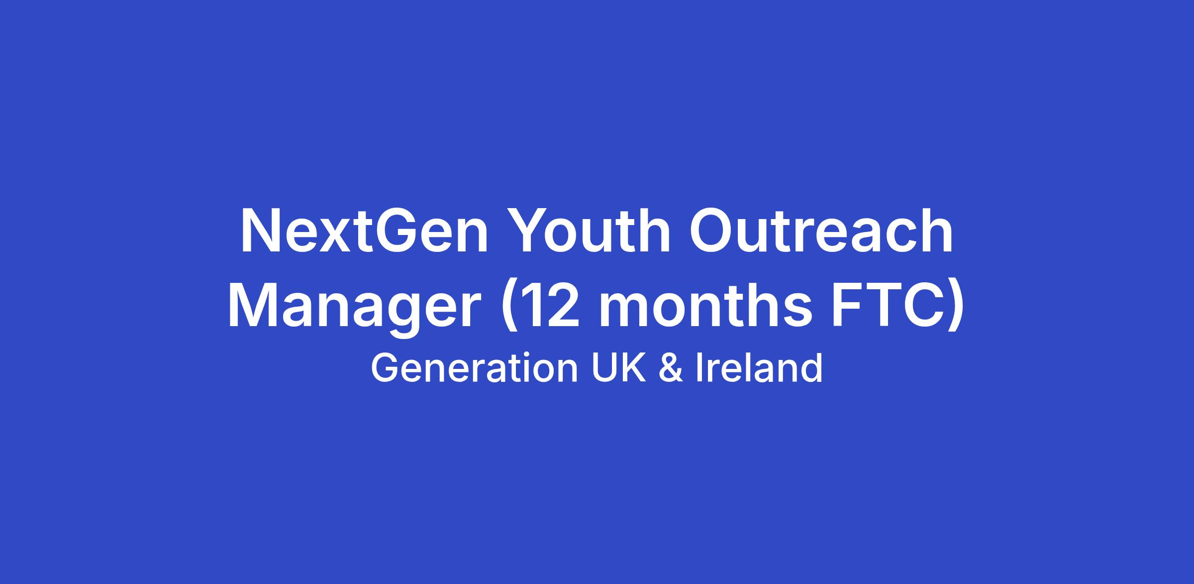 As the NextGen Youth Outreach Manager, you will lead outreach partnership activity focused on engaging young people across England with Generation programmes as part of a year-long, high-profile project (titled NextGen internally) we are embarking on to scale our youth provision.