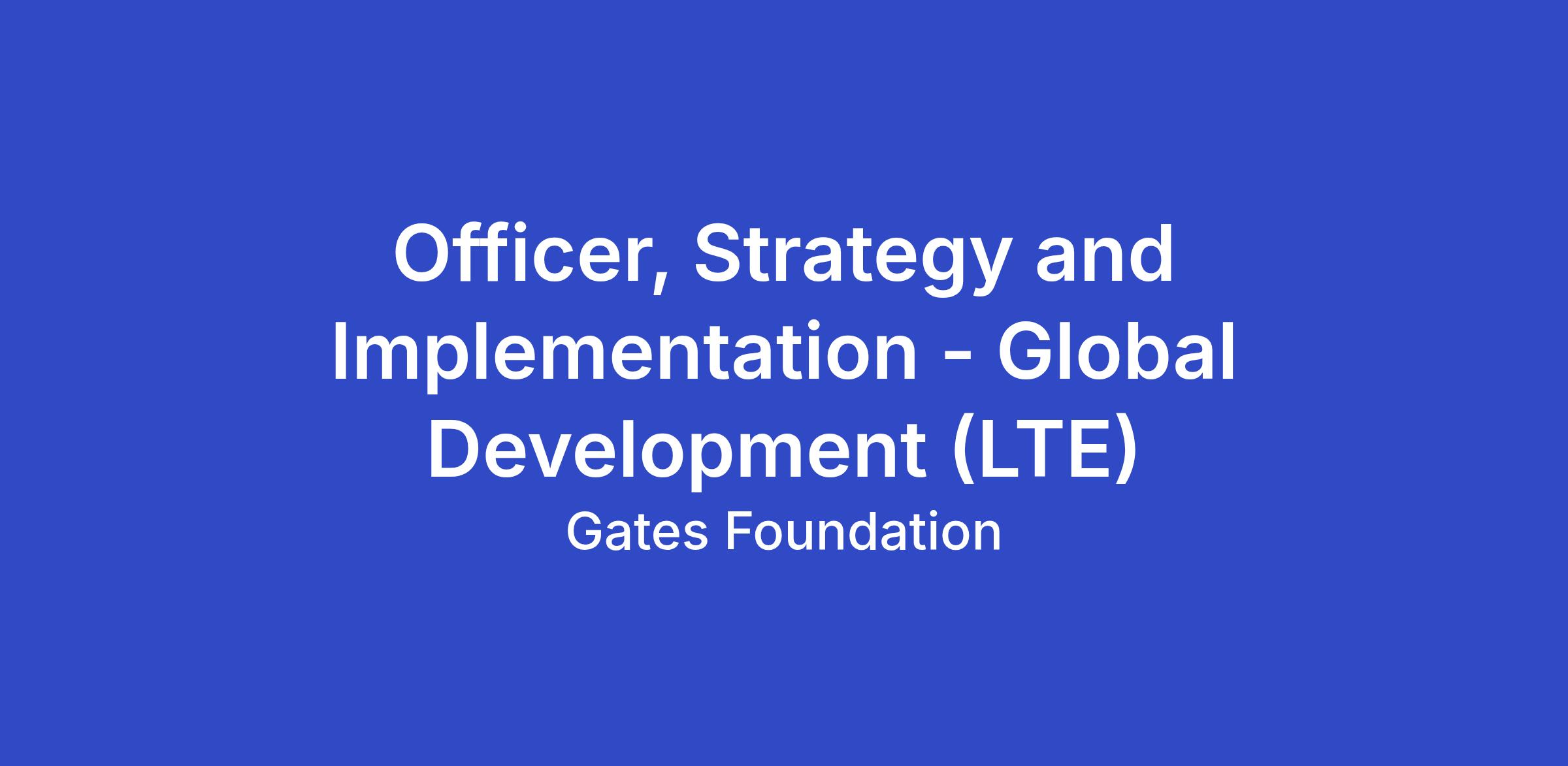 We are seeking an Officer, Strategy and Implementation to support critical strategy projects within a matrix environment. You will develop and revise strategic areas of the foundation by crafting, translating, and communicating high-quality data-driven analyses and key insights to internal teams and foundation partners. This role can sit in Seattle, WA or Washington D.C. and will report to the Deputy Director, Strategy & Partnerships.