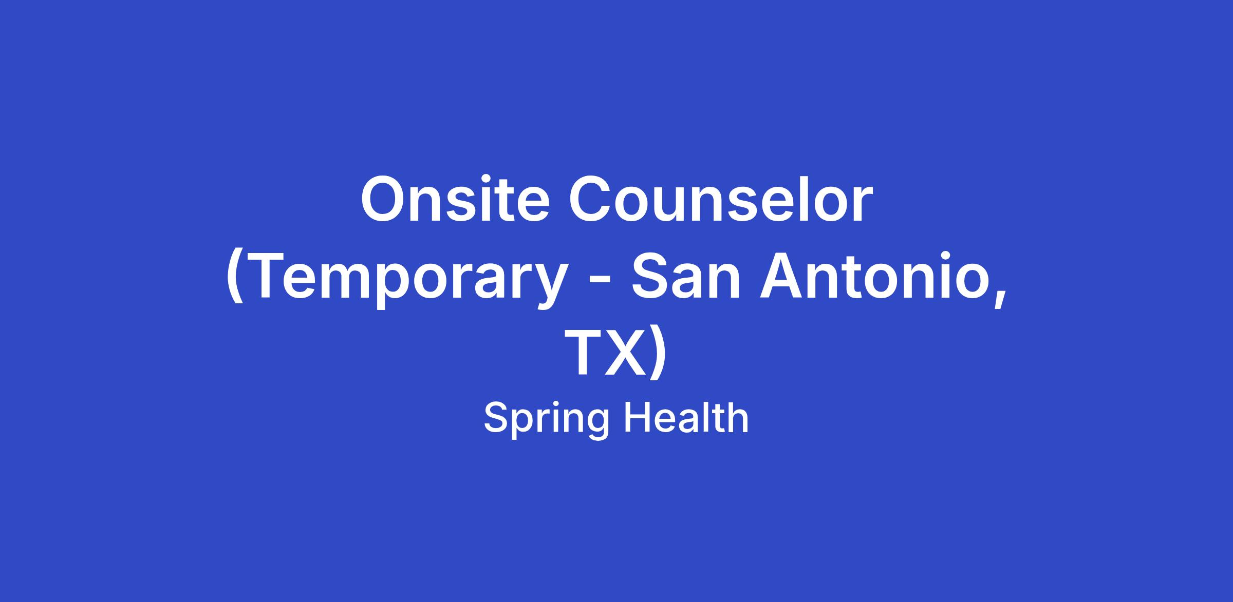The Onsite EAP Counselor role is a unique and exciting opportunity to provide EAP counseling, management consultations, program promotion, critical incident response, and training, etc. to employees as well as case manage mandatory Drug Free Workplace referrals and conduct expatriate readiness interviews. You may also provide consultation to HR, program managers, and supervisors on workplace and organizational issues. This role will report to the Spring Health Clinical Manager.