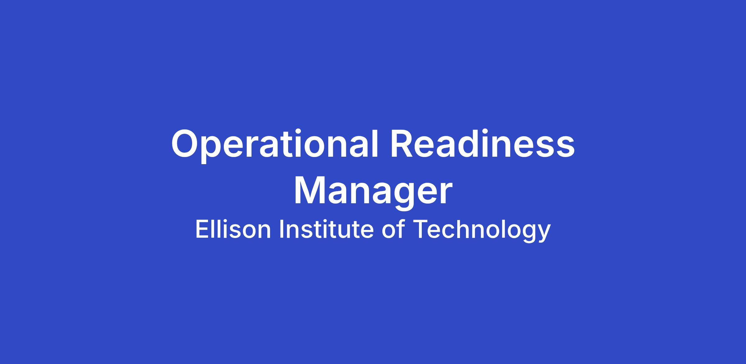 Operational Readiness Planning:
