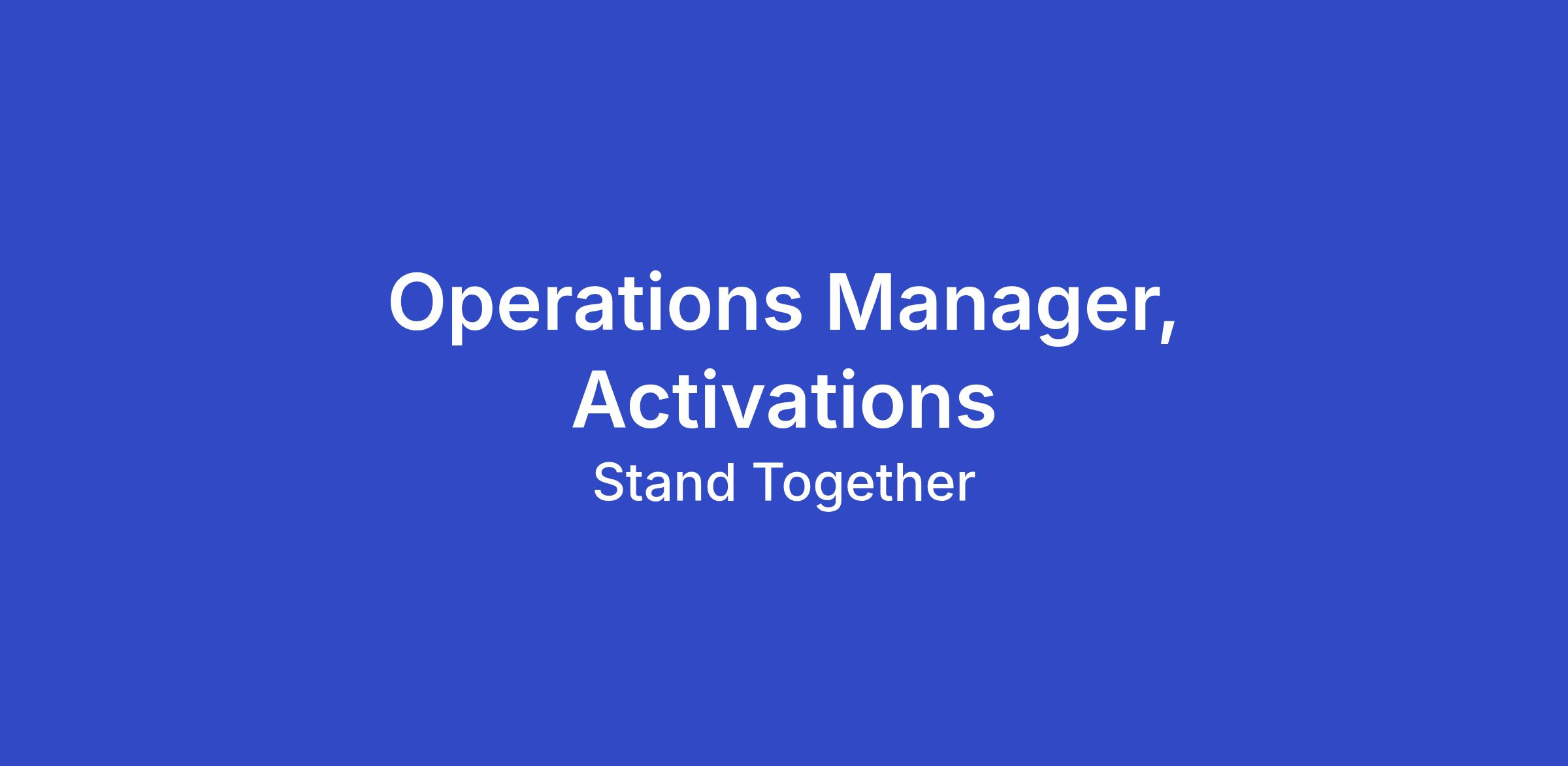 As the Operations Manager, you will play a pivotal role in enabling the Activations team to succeed within Stand Together’s complex operating model. This role is responsible for leading cross‑functional integration across core community capabilities, including knowledge systems, finance and accounting, and strategy and partnerships, ensuring the team has the structure, insight, and resources needed to execute effectively.