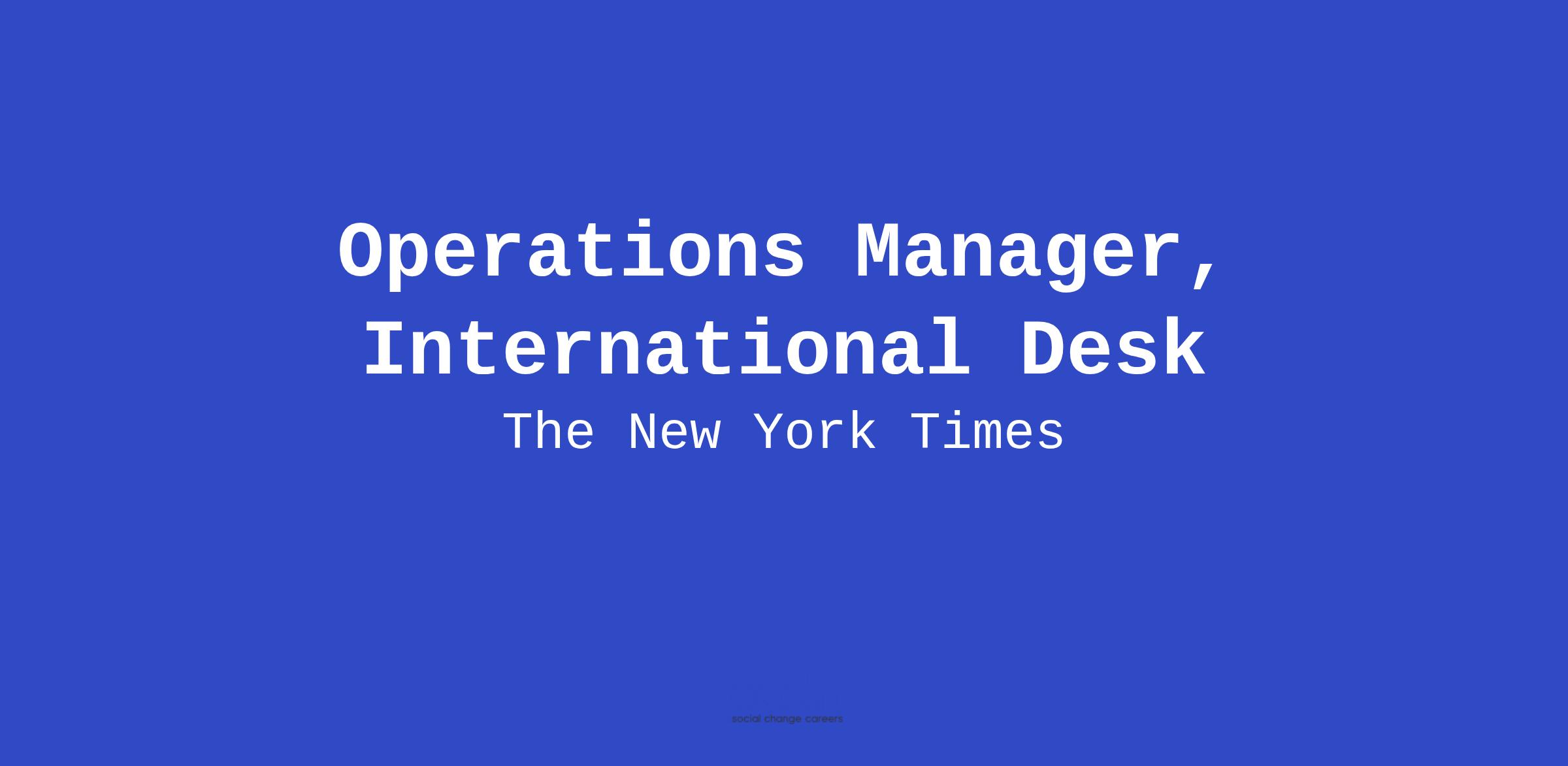 The Newsroom Operations department of The New York Times is looking for an Operations Manager to support our International desk and our expanding Global team. You will provide important administrative support across all of our International operations. It's a dynamic and important time to join the desk as we expand our footprint globally and navigate new challenges in an ever-changing world. We are looking for a highly organized self-starter capable of handling the demands of a global team in multiple time zones, with dozens of International bureaus, and a staff of more than 200, and you will report directly to the Senior Operations Manager, International.