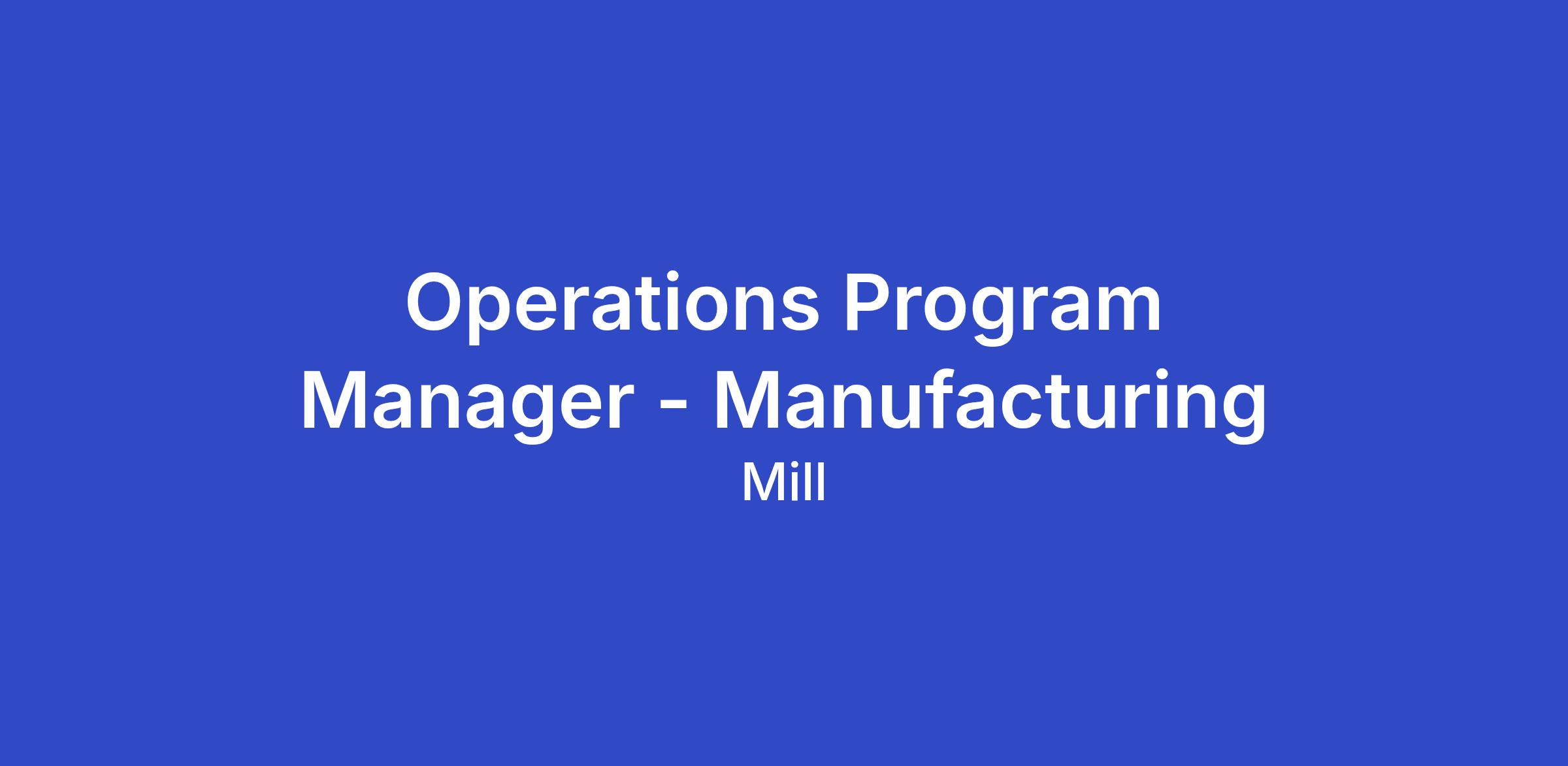 The Operations Program Manager for Manufacturing will lead the manufacturing expansion execution for Mill Commercial. We are looking for someone who can manage a fast-paced program with calm and clarity when the pressure is high. This individual will interface both internally and externally, and must be able to represent Mill’s interests clearly and consistently. The OPM is a master communicator, gathering information from vendors, partners, and internal stakeholders and delivering clear and effective messaging to drive decisions.