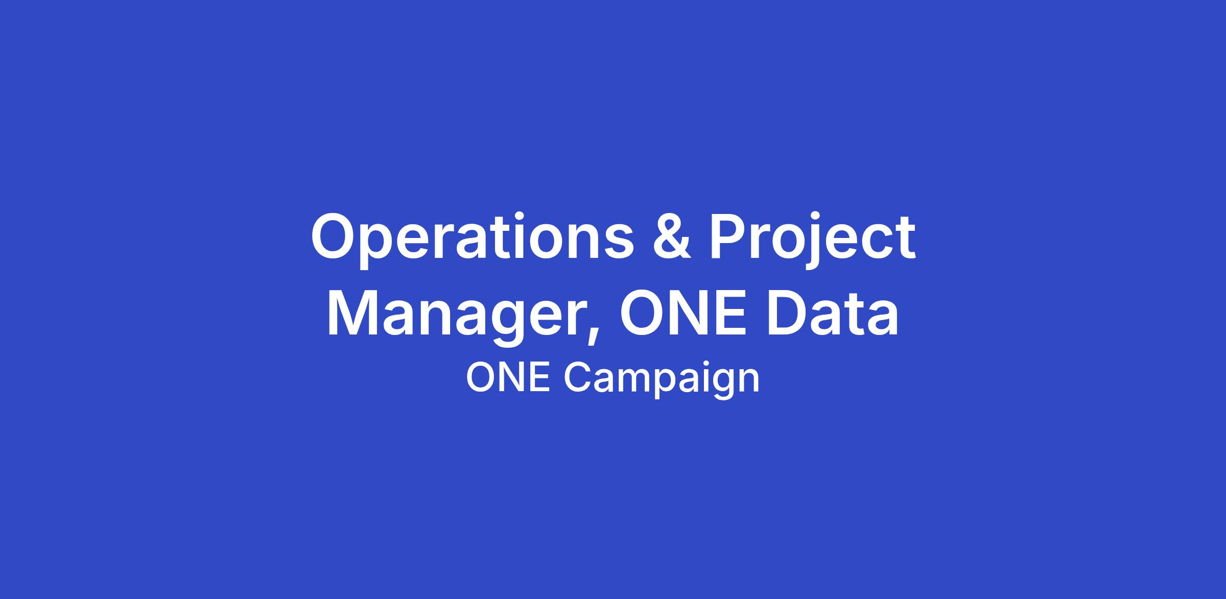 The Operations and Project Manager will provide project, grant, and budget management for ONE’s Global Policy & Strategy Team as they continue to scale their flagship initiative, ONE Data. They will ensure operational excellence in a dynamic, entrepreneurial environment by proactively improving and maintaining team workflows. An ideal candidate will be detail and process oriented, and energized by building systems that enable high-impact teams to scale.
