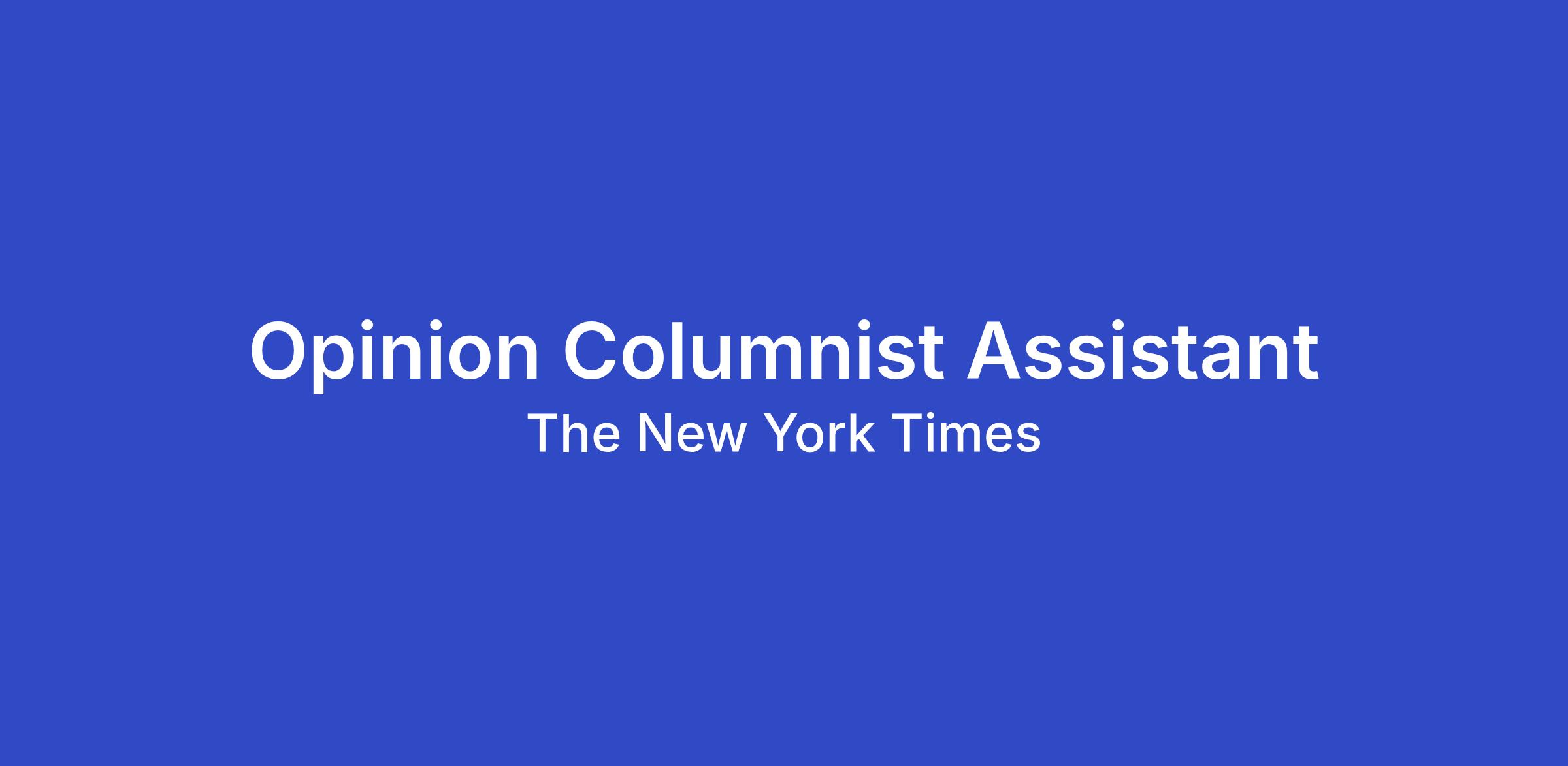 The New York Times Opinion section is seeking an editorial assistant to support the Times columnist Thomas Friedman. The job, which is based in Washington D.C., is a great opportunity for someone who is organized, has proven administrative skills and interest in news.