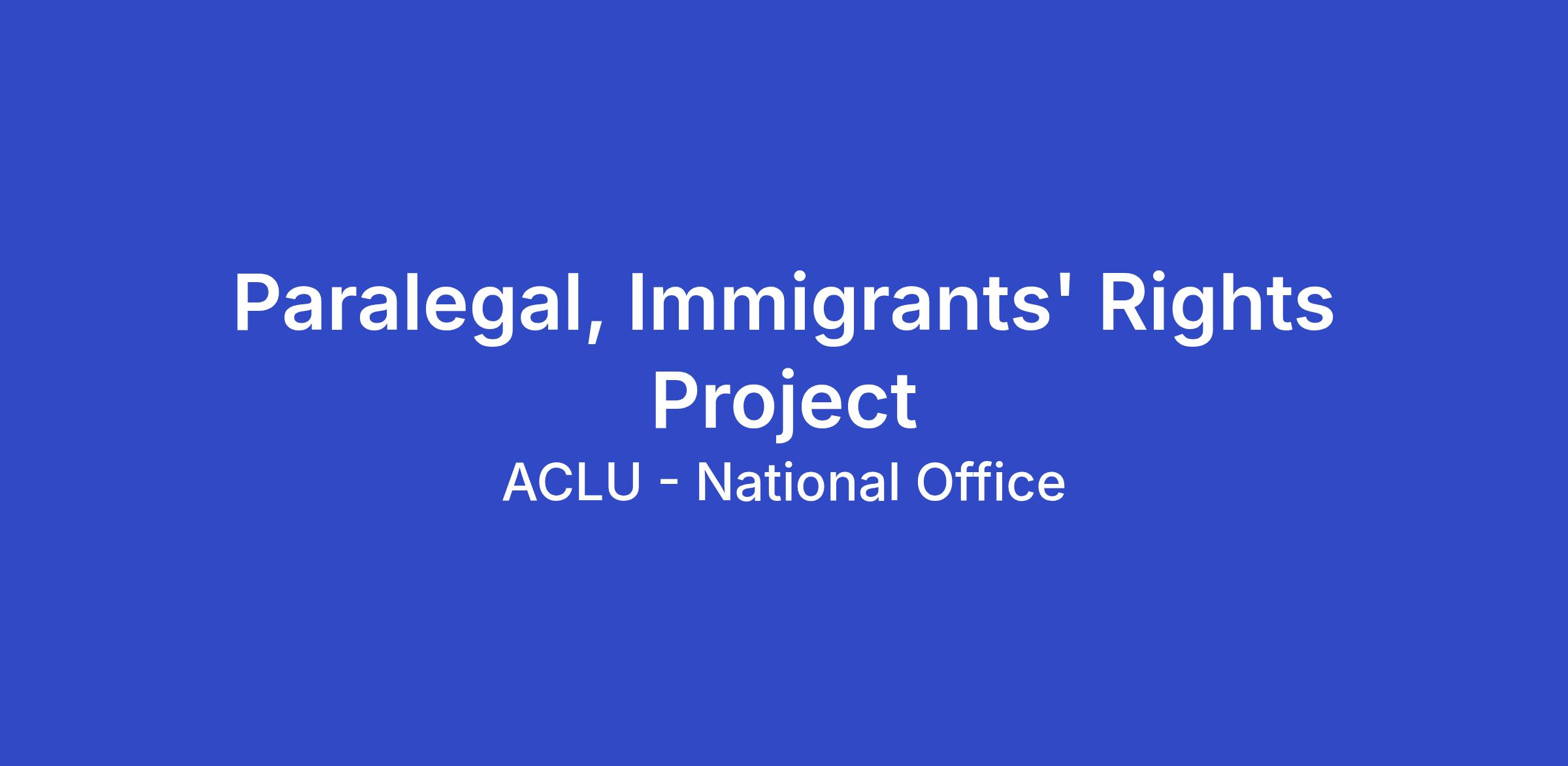 The ACLU seeks applicants for the full-time position of Paralegal in the Legal Department of the ACLU’s National office in New York. This is a hybrid role that has in-office requirements of two (2) days per week or eight (8) days per month.