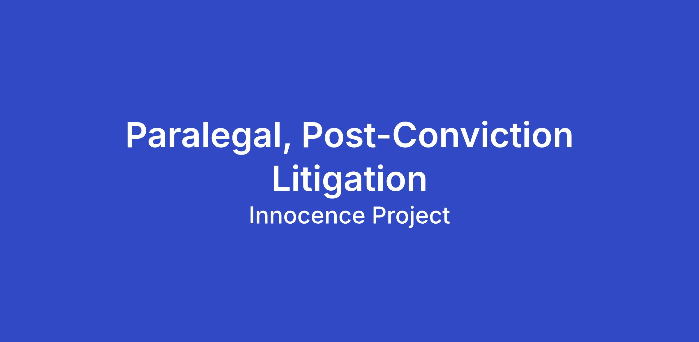 Post-Conviction Litigation (“PCL”) Paralegals provide research assistance, drafting, and administrative support to attorneys pursuing one of the Innocence Project’s (“IP”) core goals—freeing the innocent. PCL Paralegals are also responsible for general case management, records and data management, being responsive to time-sensitive litigation related requests, and for more generally assisting with the organization and maintenance of various department resources.