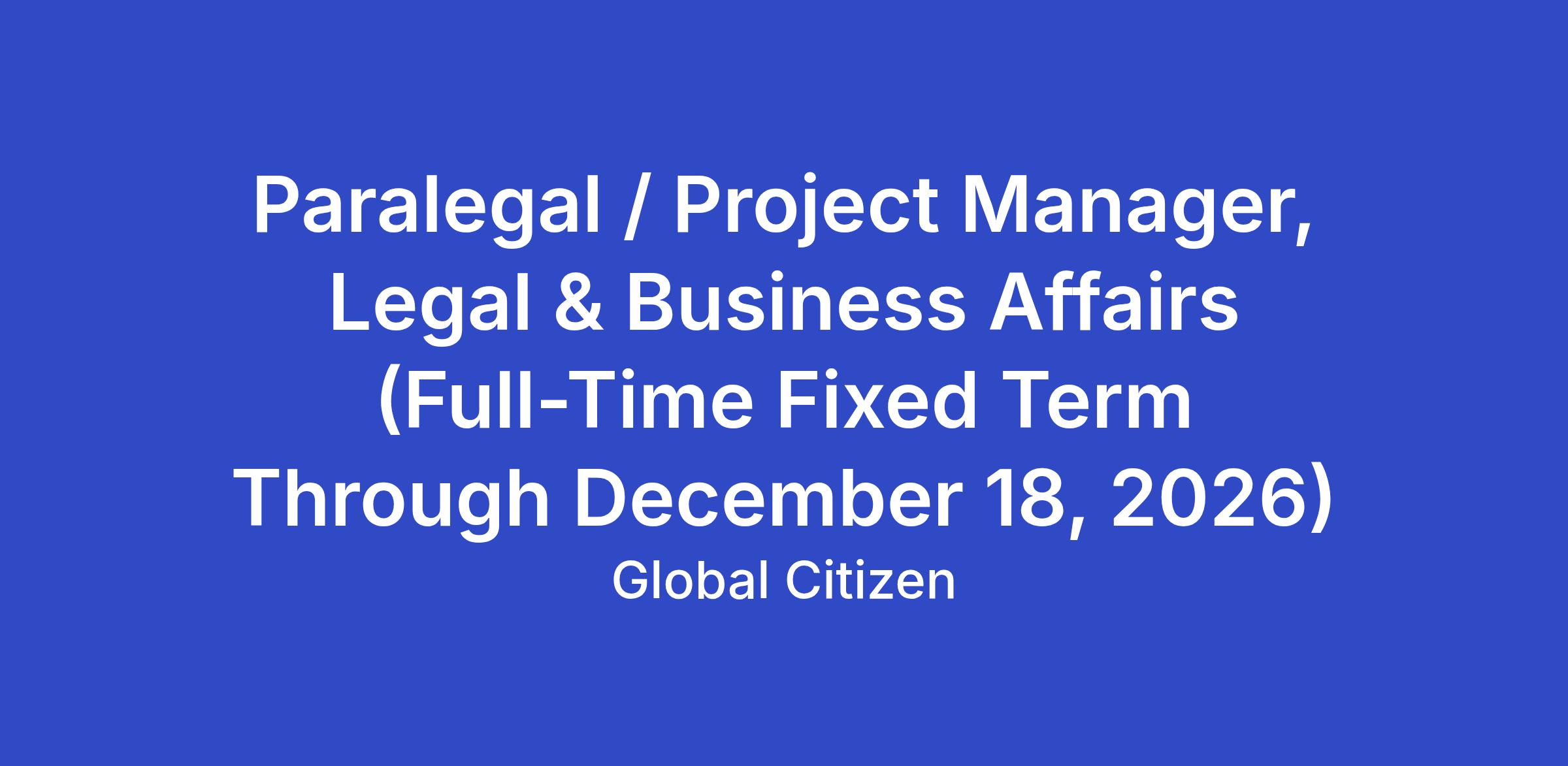 Global Citizen is seeking a Paralegal / Project Manager to support the Legal & Business Affairs team and drive operational excellence across business functions. This role combines legal support, contract administration, and cross-functional project management.