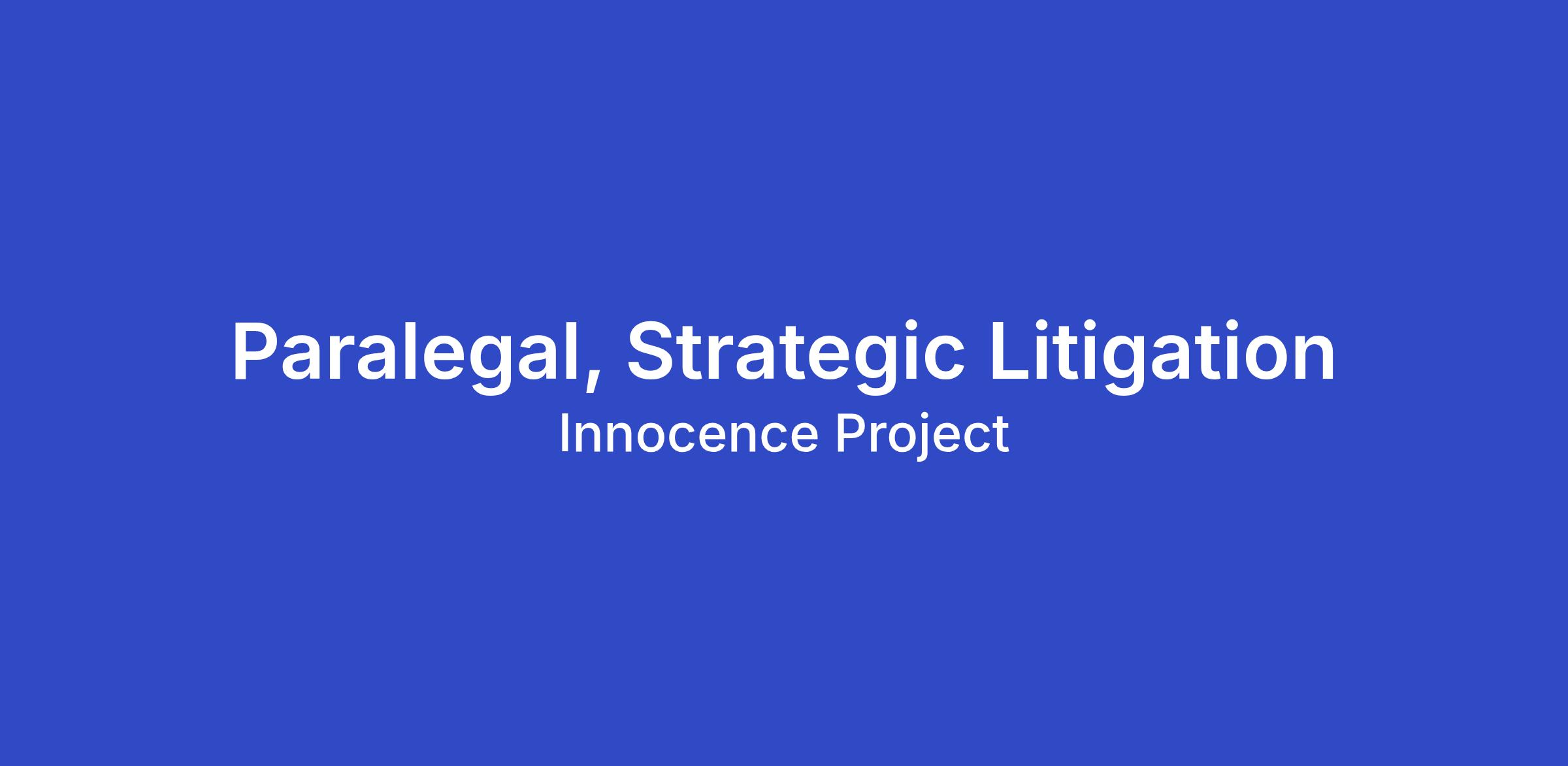 The Paralegal, Strategic Litigation provides support to Strategic Litigation (SL) attorneys at the Innocence Project and is a vital part of the Strategic Litigation team. This paralegal will work directly with the two lawyers in the Department who focus on issues related to forensic sciences. The paralegal is actively engaged in department happenings, eager to learn all facets of the department and is expected to assist with case research, development and management, and time-sensitive litigation matters. The paralegal is detail-oriented enough to organize and maintain litigation resources necessary to efficiently and effectively manage the Strategic Litigation department’s cases and to serve counsel who seek our assistance. This position is ideal for someone with a strong interest in the criminal legal system and a desire to attend law school or pursue other postgraduate education in a related field.
