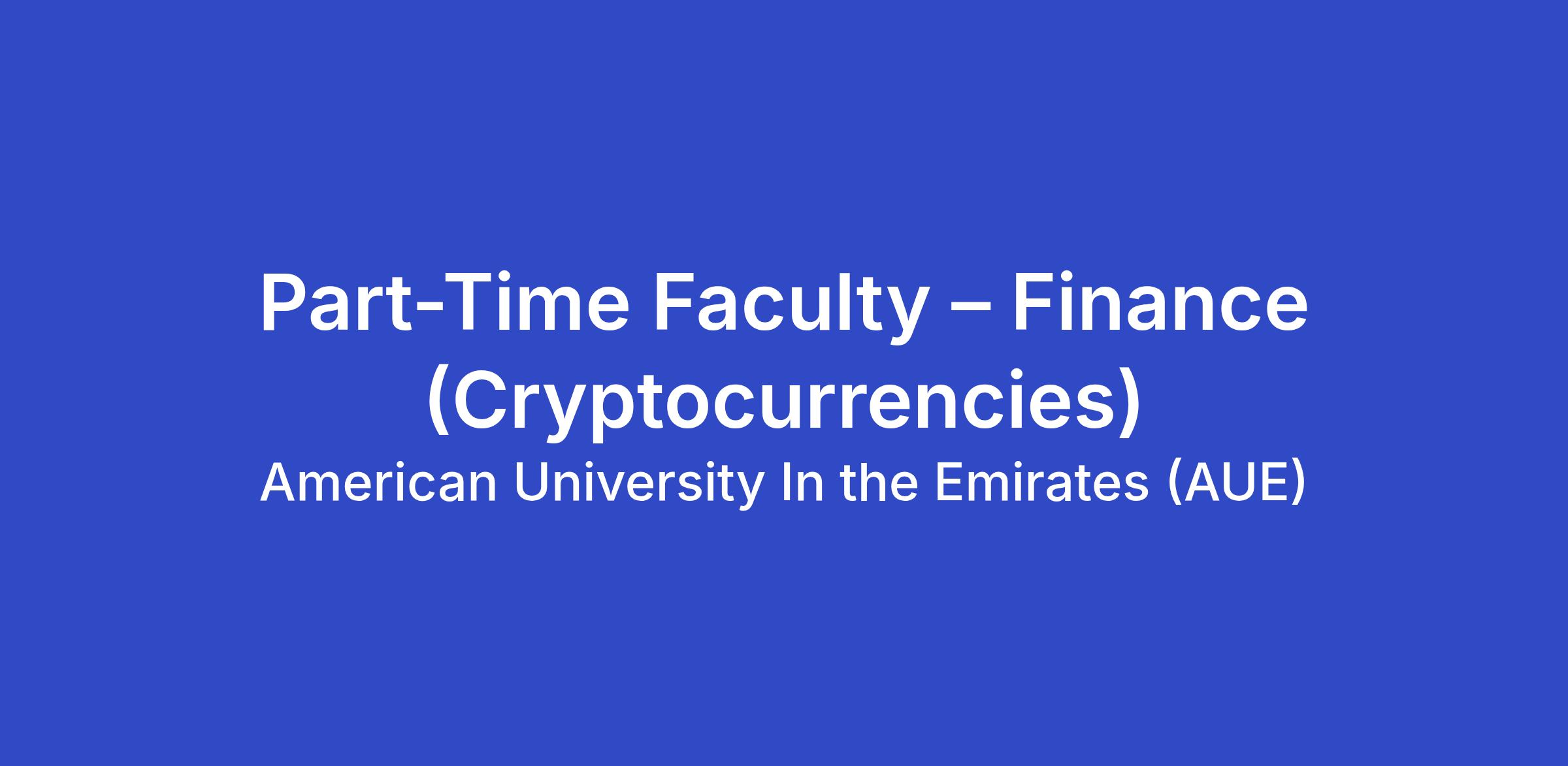 The American University in the Emirates (AUE) invites applications from Ph.D. holders for part-time faculty positions (Assistant Professor, Associate Professor, and Professor) in Finance (Cryptocurrencies) for the Academic Year 2026–2027.