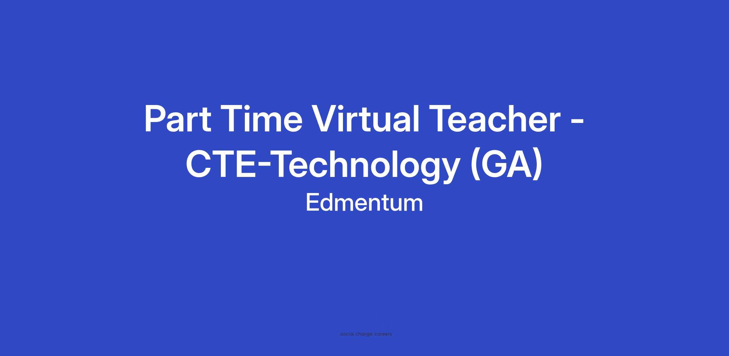 We are seeking a Part Time Virtual Teacher certified to teach CTE-Technology/Computer Science. You must possess a valid teaching certificate in Georgia CTE Technology/Computer Science to apply.