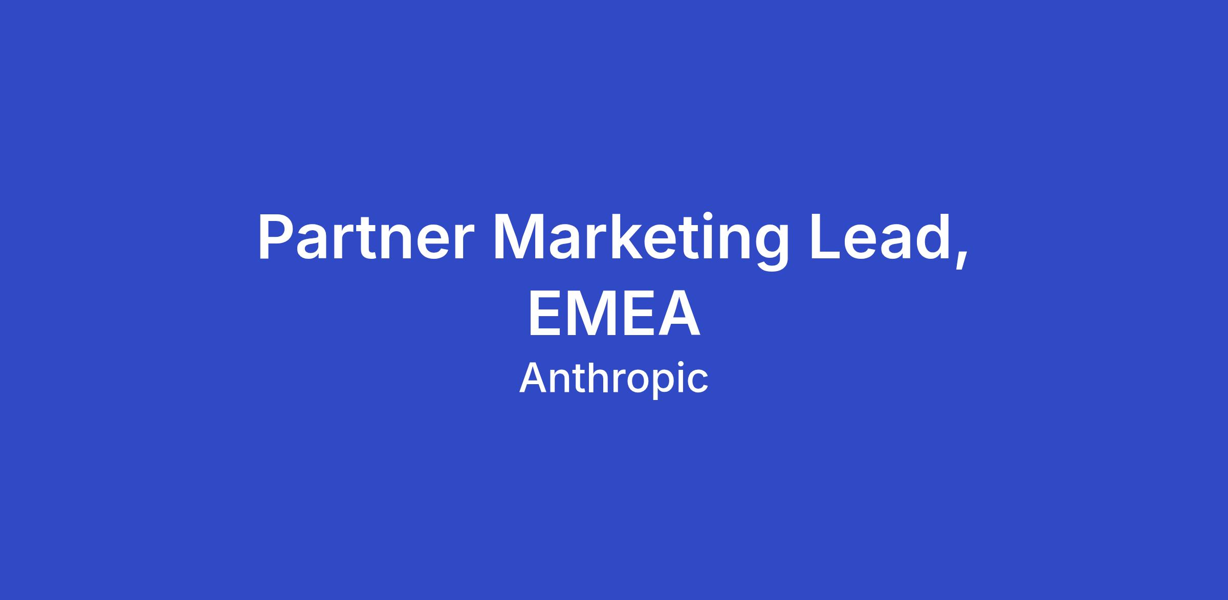 Be the face of Anthropic marketing to EMEA partners — responsive, reliable, and genuinely invested in their success