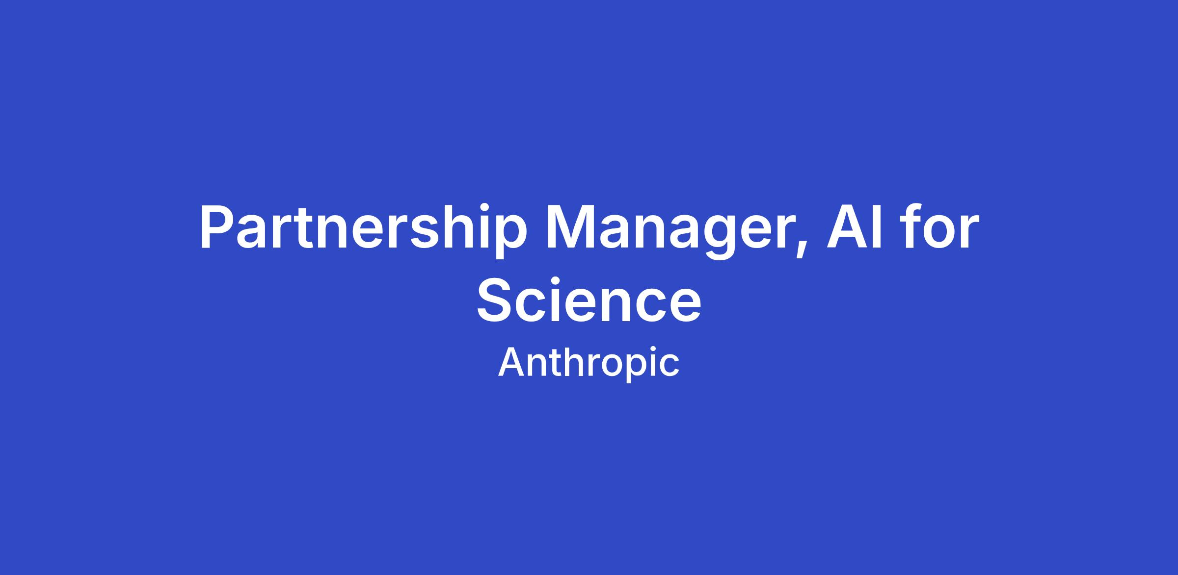 We're looking for a [Partnership/Program] Manager to lead our partnerships with US based research institutions. You'll build partnerships that look to bring Claude for Life Sciences to research institutions as a mechanism by which institutions can advance toward shared goals while enabling their researchers to engage in less structured experimentation.
