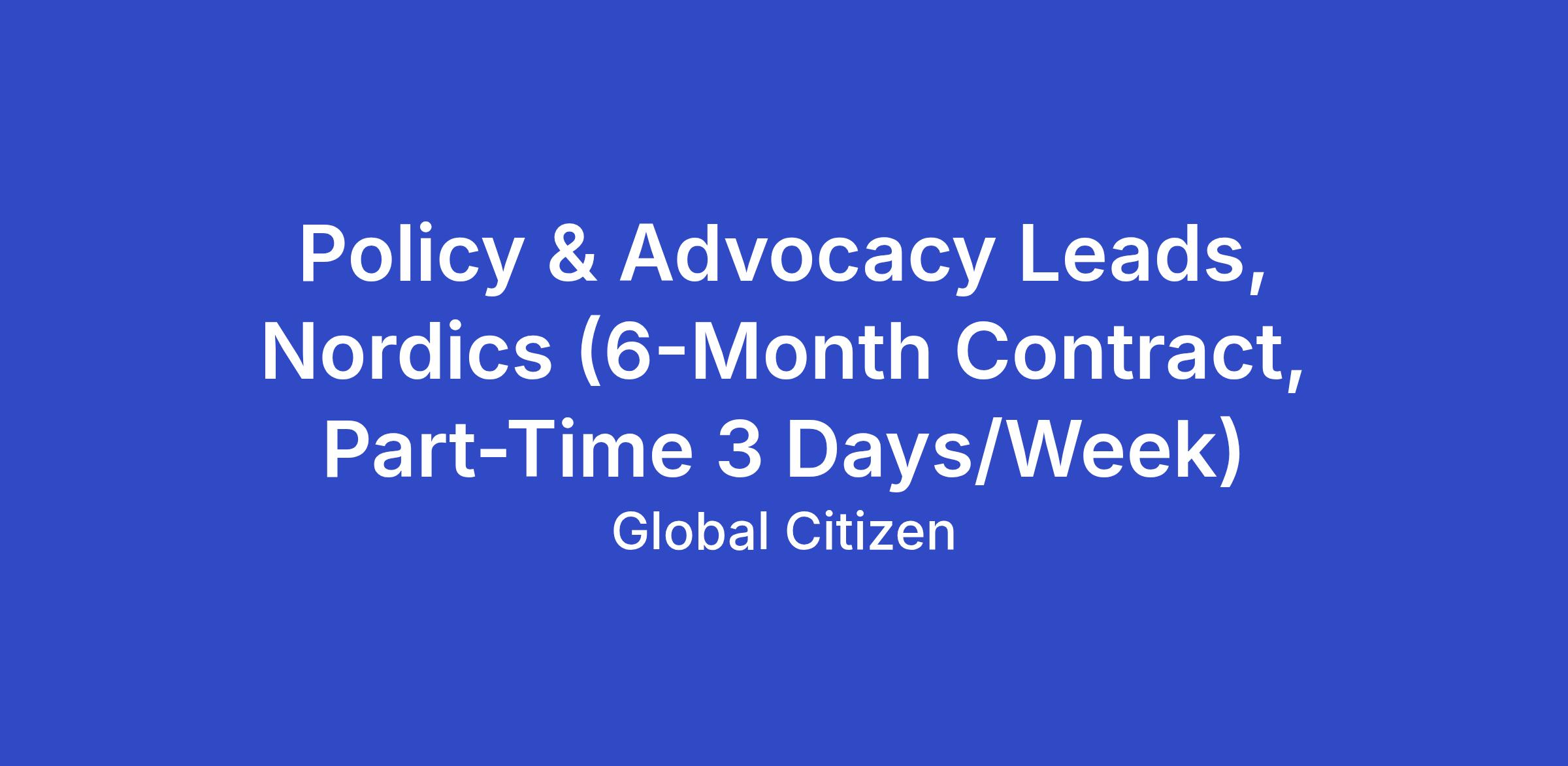 Policy & Advocacy Lead, Nordics (6-Month Contract, Part-Time 3 Days/Week)