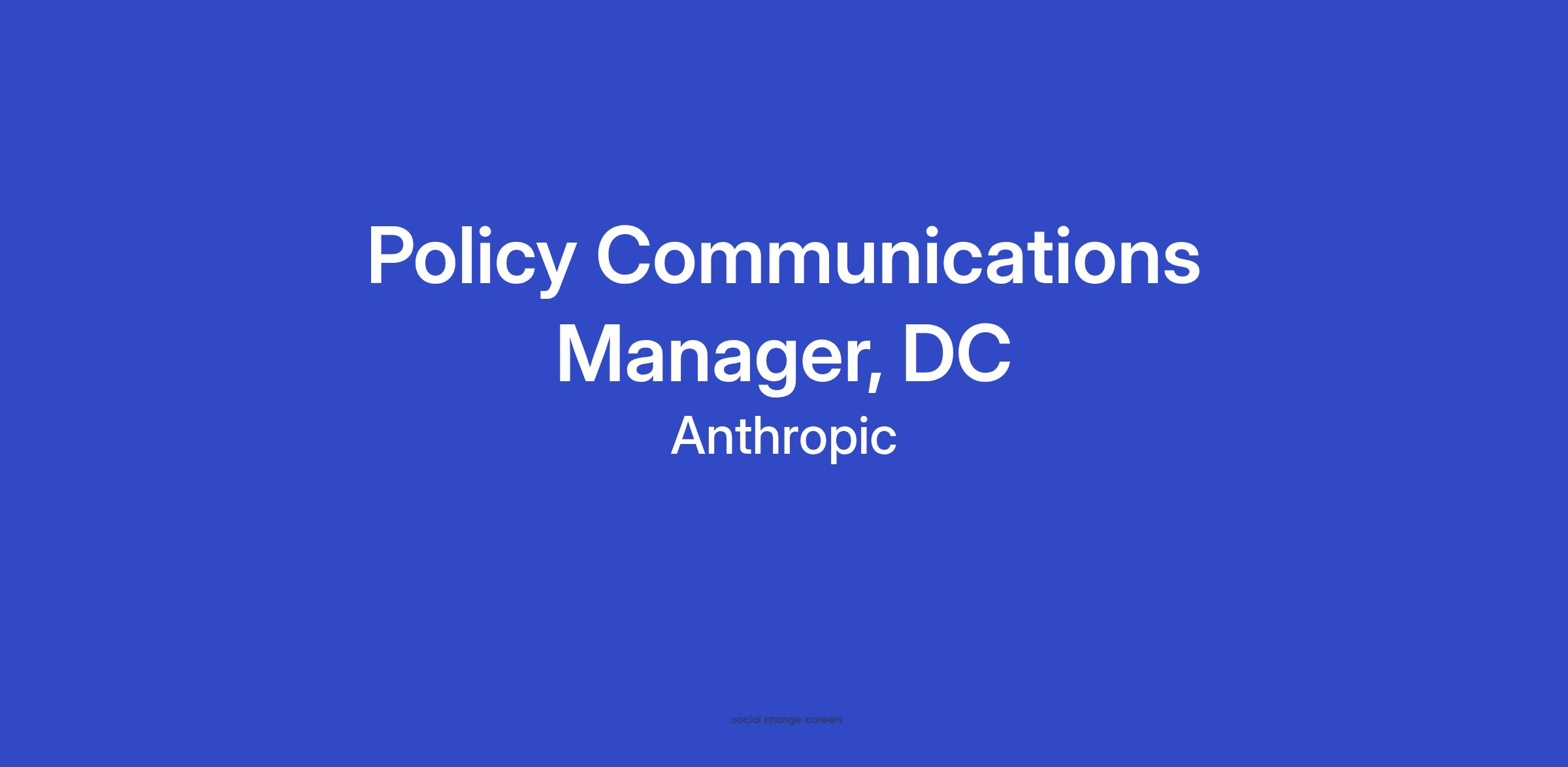 Reporting into the Head of Policy Communications, you will work with policy, legal and external affairs to educate press and policy makers in DC and beyond about our products and principles. The ideal candidate should be someone who is a highly communications and media relations professional who is used to working in a fast-paced environment. They should have the ability to move fast, think critically and work collaboratively on complex issues. A deep understanding of the DC media environment, the technology sector and Anthropic’s varied audiences is key.
