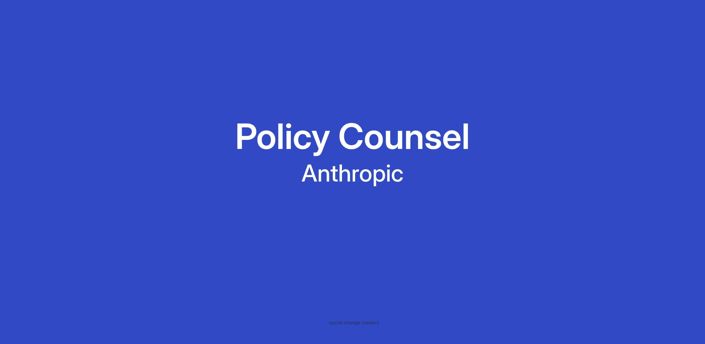 Anthropic is seeking a Policy Counsel to support our public policy and legal initiatives at the intersection of AI technology and regulation. As a member of our legal team, you'll work cross-functionally to navigate emerging policy challenges and help build and advocate for frameworks that promote responsible AI development. This is an exceptional opportunity to tackle novel legal and policy questions while contributing directly to the future of AI governance.