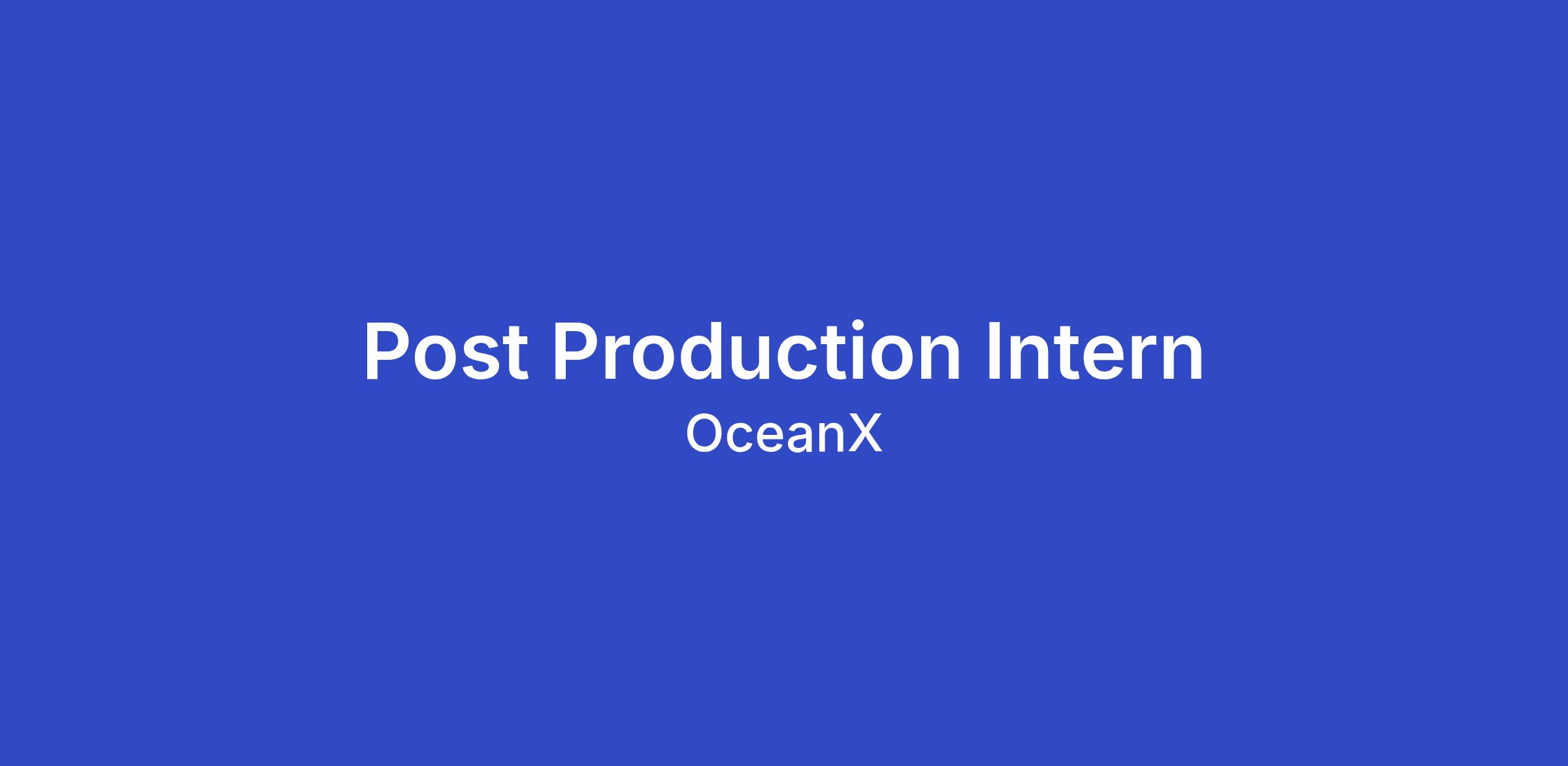 OceanX is seeking a Post-Production Intern to support the Digital Programs team as part of the post-production team. This role focuses on managing and organizing a growing library of ocean and nature footage that requires ongoing cataloguing and metadata enrichment.
