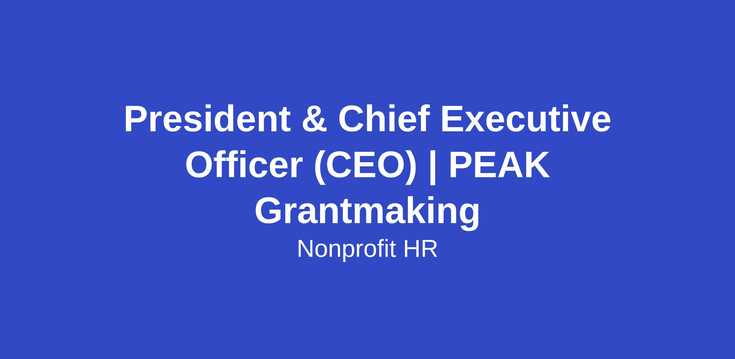 PEAK Grantmaking is a vibrant community of more than 9,000 philanthropy professionals dedicated to advancing equitable, effective grantmaking practices. PEAK’s mission is to transform philanthropy by elevating the field of grants management and empowering grants management professionals to lead the way in operationalizing equity-centered, values-driven grantmaking practices.PEAK believes in principled grantmaking practices that align funders and nonprofits as equal partners in advancing their respective missions and strategic objectives. Narrowing the power gap and ensuring that funders live their values through their grantmaking practices will result in positive change for the causes and solutions we seek to collectively advance. PEAK Grantmaking bases its decisions and actions on six core organizational values: Community, Equity and Inclusion, Integrity, Learning, Partnership, and Transparency.The OpportunityAs PEAK turns 30, it seeks an experienced, strategic, and values-driven executive leader to serve as the organization’s next President & CEO. This person will bring strong management abilities and deep knowledge of the philanthropic and nonprofit landscape. The role requires a leader who can build and sustain a high-performing team, align resources with mission, and ensure operational excellence while advancing PEAK’s vision and mission.This role is well suited for a senior executive who combines field credibility with strong financial and operational leadership, a deep commitment to building a human-centered workplace, and a track record of strengthening and demonstrating organizational value. The President & CEO will be expected to lead with an equity mindset while ensuring PEAK’s long-term financial sustainability and relevance in a changing philanthropic landscape.Key ResponsibilitiesOrganizational Leadership & Strategy