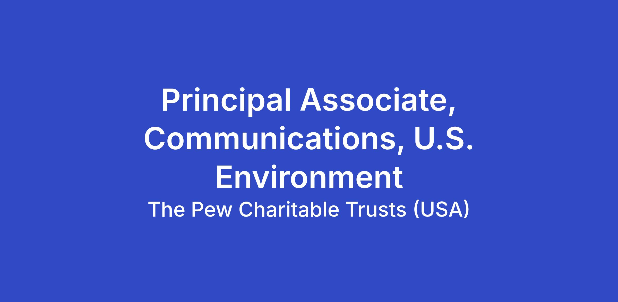 We seek a principal associate for Pew’s program communications team to support U.S. environment priorities across the U.S., including plastics. This individual helps implement communications strategies for projects to effectively communicate Pew’s work and messages.