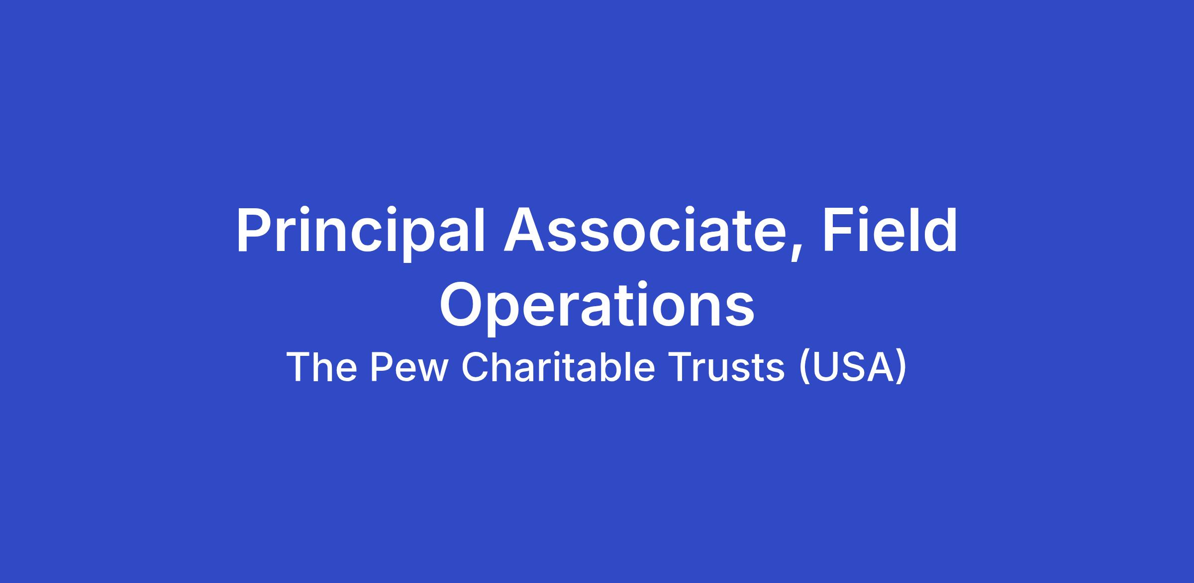 The principal associate, field operations, is part of the field team based in Washington, D.C. The team supports projects that require field and on-the-ground resources to complement existing efforts and assists in developing and implementing targeted legislative, advocacy and communications field strategies such as organizing, generating media coverage, and managing government relations. The principal associate will engage in tactical strategy development and campaign design as it relates to field operations and in coordination with other programmatic and operations units at The Pew Charitable Trusts.