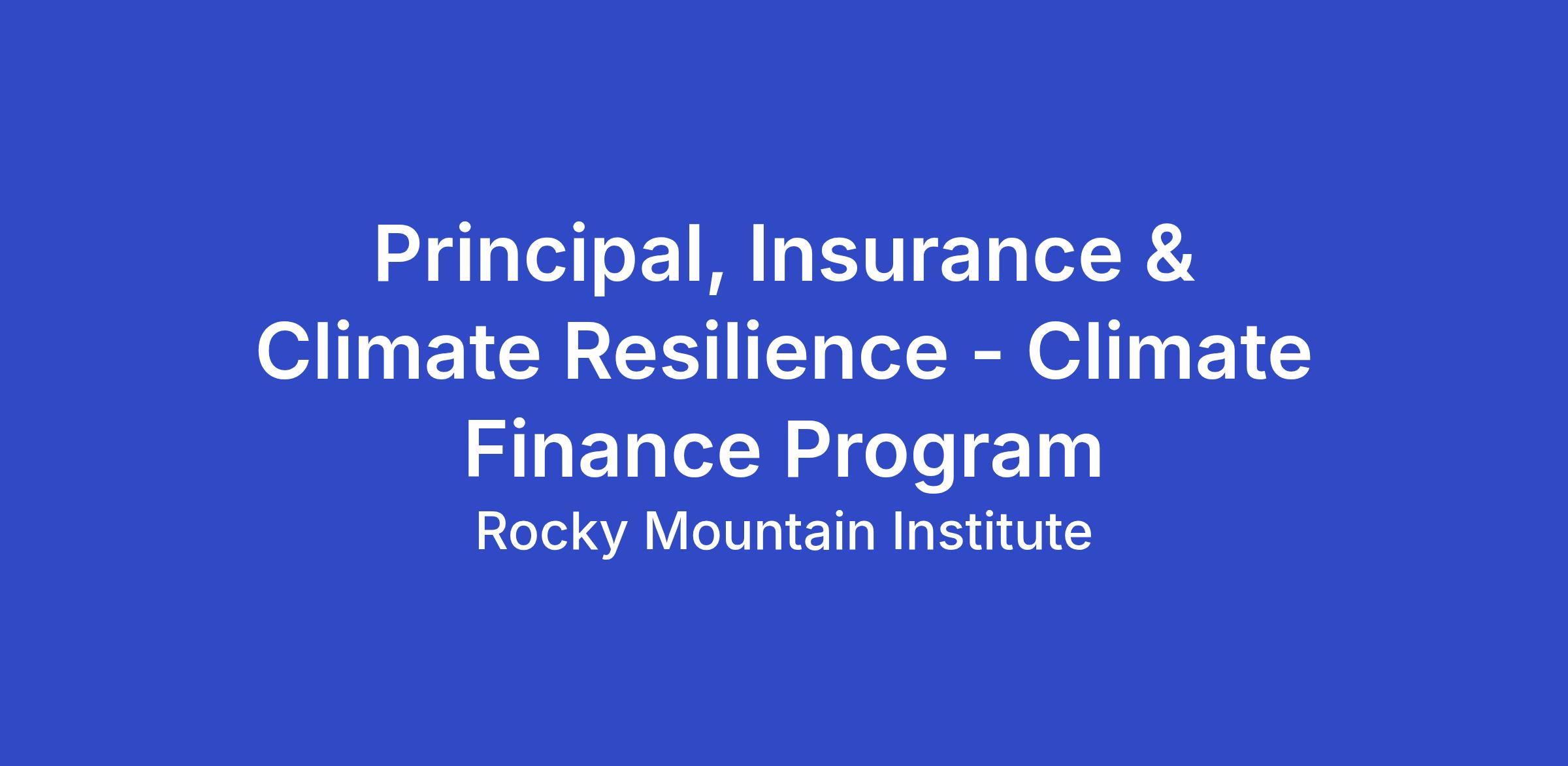 RMI’s Finance team is seeking a Principal, Insurance & Climate Resilience to lead and expand our work at the intersection of extreme weather risk, insurance markets, and disaster preparedness. This role will shape RMI’s strategy on how insurance markets can better price risk, incentivize resilience, and mobilize capital toward climate-adaptive outcomes.