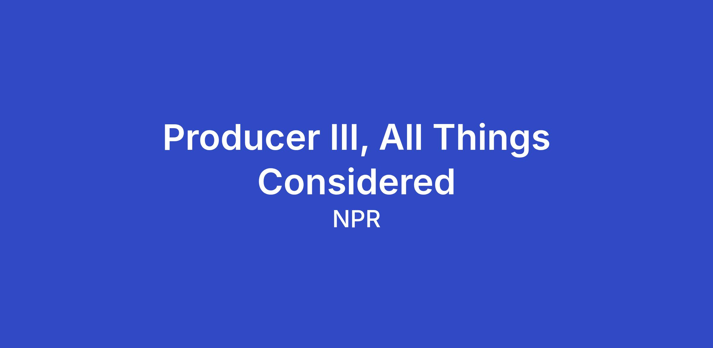 The ideal candidate for the Producer III position on All Things Considered will have a background in audio news journalism, as well as a passion for meeting diverse audiences across platforms.