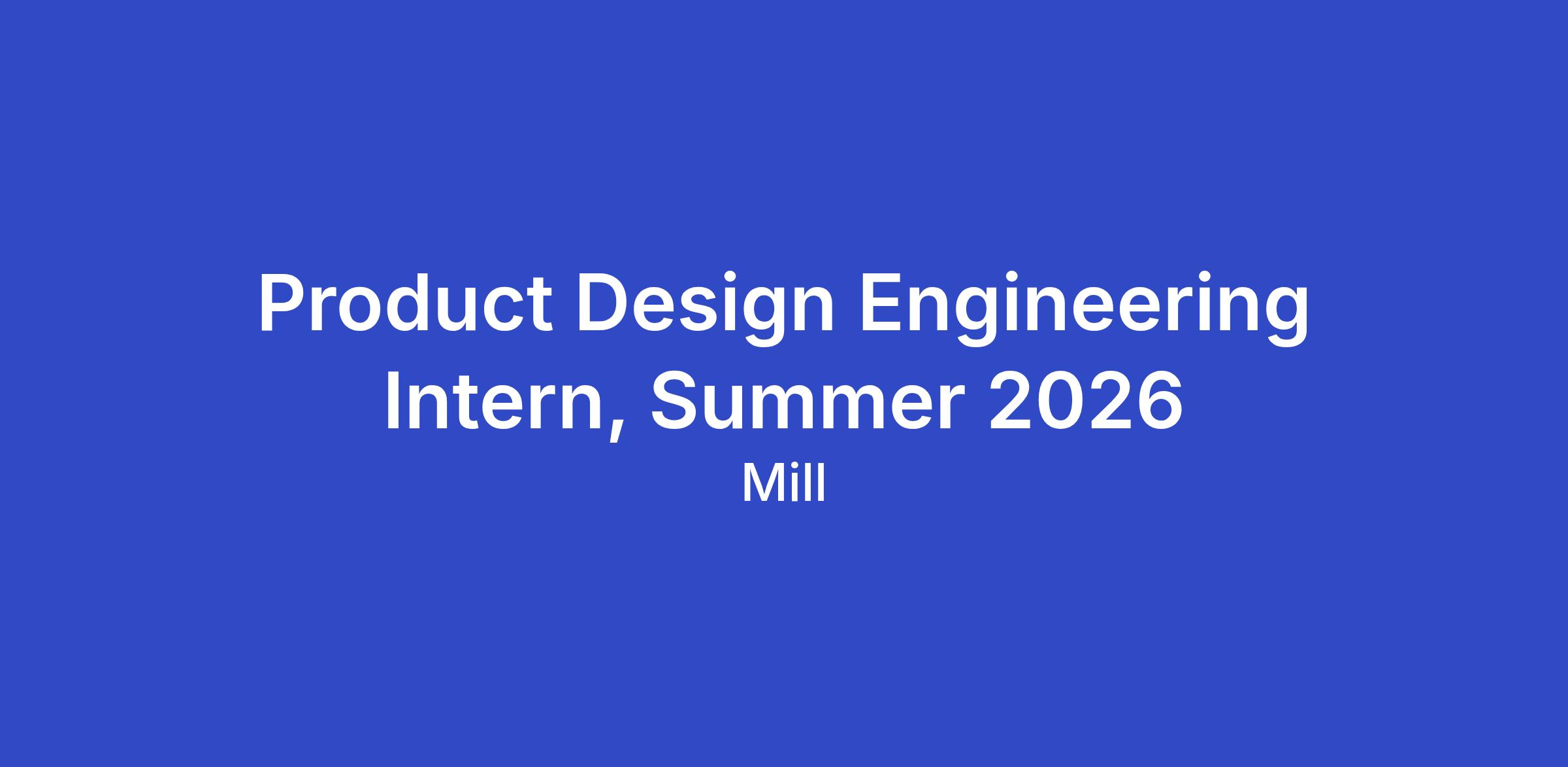 As a Product Design Engineering intern at Mill, you’ll be working with a tight-knit, fast-paced team on a novel consumer product. Your day-to-day will include hands-on work with hardware components and lab equipment as well as CAD design tools like NX. Since we’re a small team, your work and learning will span design, tooling, and testing as we push towards launch. This internship is for someone who wants to learn and be creatively challenged.