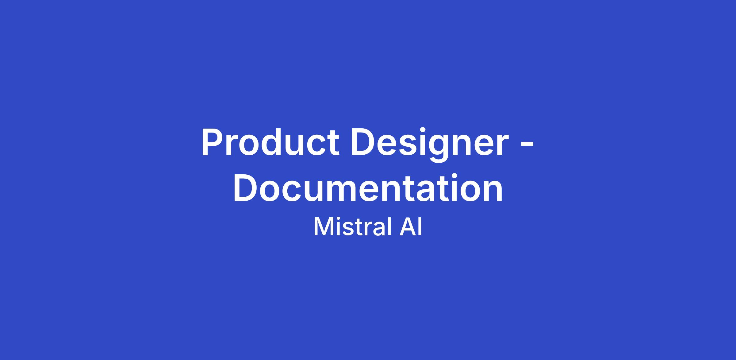 We’re looking for a lead designer to elevate documentation as a first-class product at Mistral. Documentation isn’t just an afterthought—it’s the backbone of how our teams, customers, and builder partners understand, adopt, and innovate with Mistral’s products. If you’re a designer who’s curious, systems-oriented, and obsessed with clarity, and you want to shape how the world learns to build with AI, let’s talk.