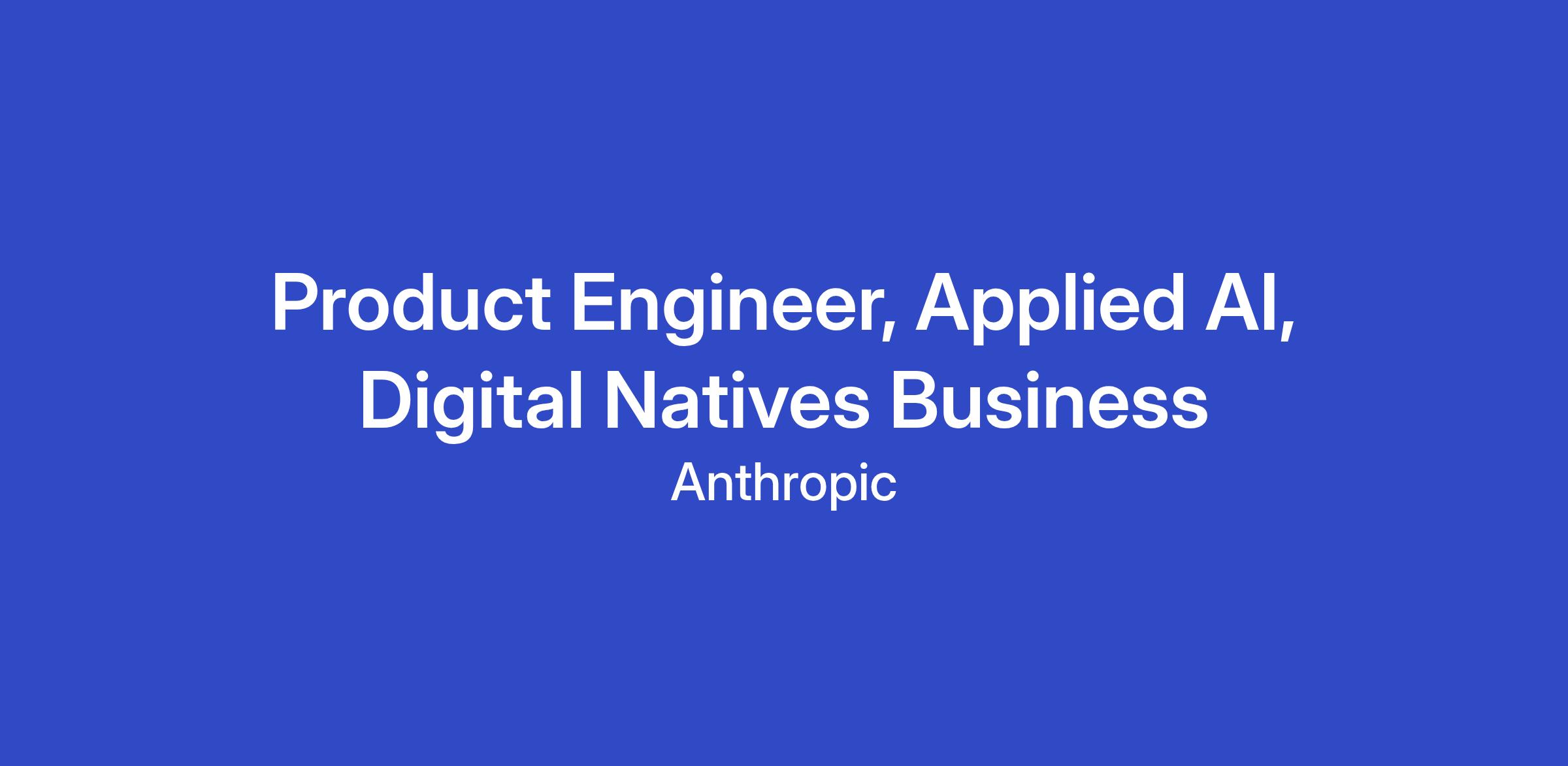 As a member of the Applied AI team at Anthropic, you will be a technical Product Engineer focused on becoming a trusted technical advisor to Digital Native Businesses - technology companies adopting the Claude API into their core products. You will work closely with customer product and engineering teams as they ship new products powered by Claude: advising on architecture design decisions, developing evaluation frameworks, and guiding customers through the most cutting-edge implementation patterns for LLMs.