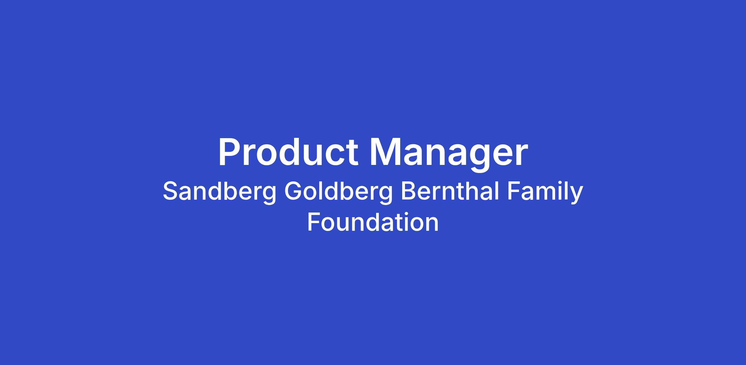 The Sandberg Goldberg Bernthal Family Foundation is committed to Equal Employment Opportunity without regard to age, race, ethnicity, gender, protected veteran status, disability, sexual orientation, gender identity, or religion. It’s important to us that people of all identities and backgrounds see themselves represented and included in our work, so we actively encourage people of all identities and experiences to apply.
