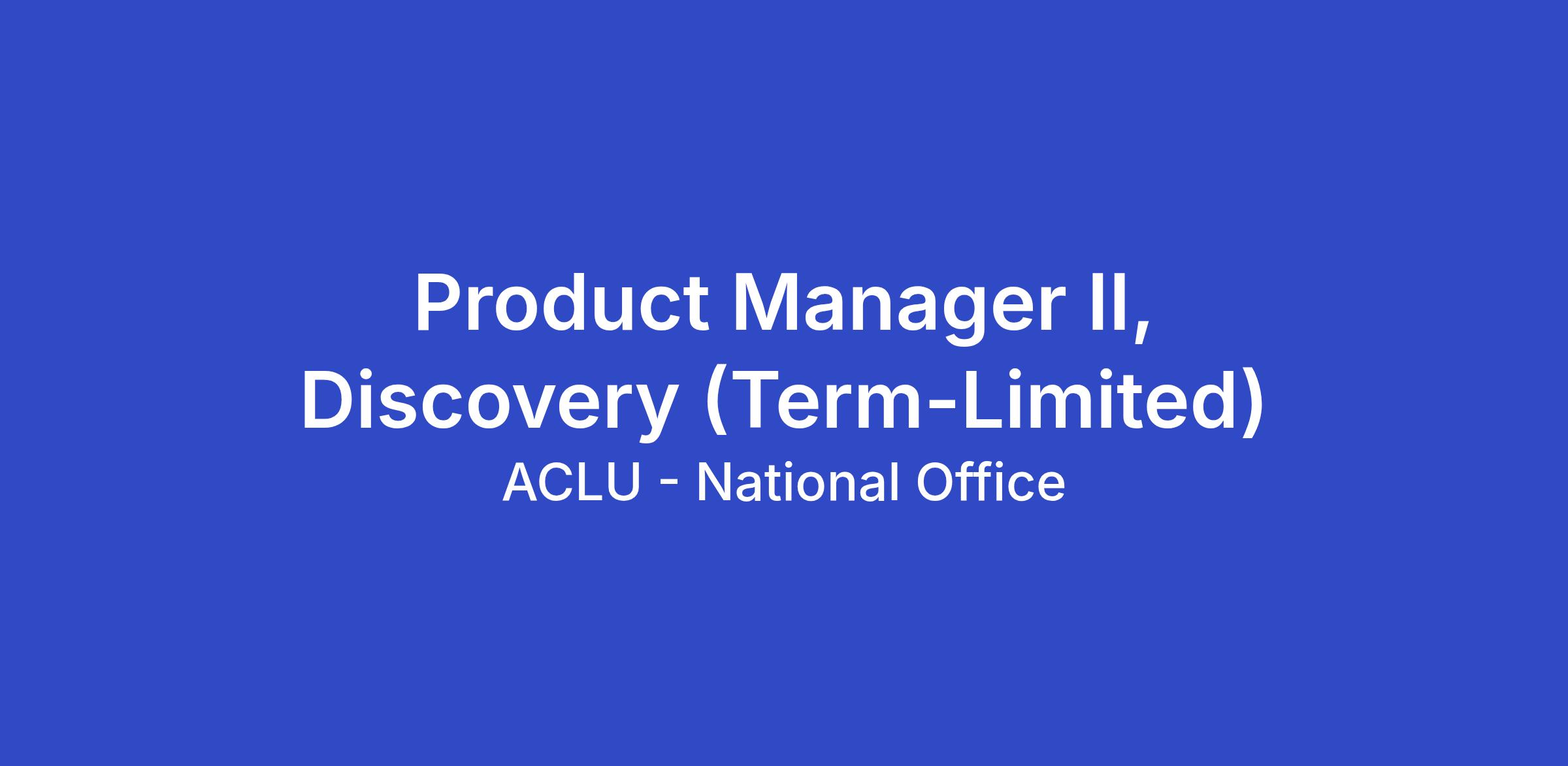 The ACLU seeks applicants for the full-time position of Product Manager II in the Technology Department of the ACLU’s National office in New York, NY. This is a hybrid role that has in-office requirements of two (2) days per week or eight (8) days per month. This is a three-year term-limited position.