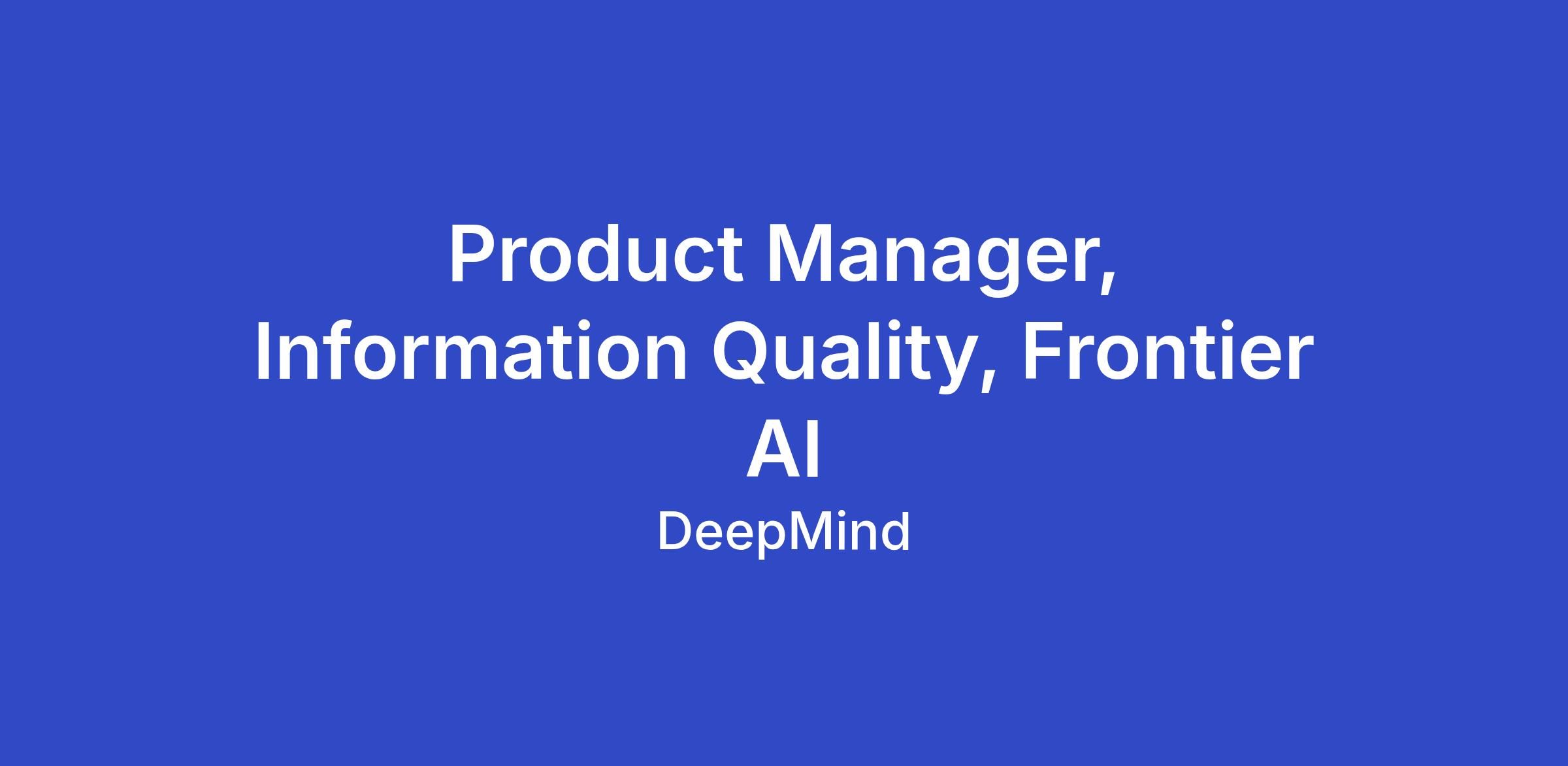 As a product manager at Google DeepMind you will be responsible for shipping cutting edge AI research breakthroughs into Google’s AI models and products. As a PM on Frontier AI within GDM you will be working with brilliant AI researchers who are focused on making the biggest advances across new model architectures, AGI and advanced applications like Agents and Robotics. As the PM for Information Quality within Frontier AI, your job will be to understand the implications of generative AI on the broader societal information ecosystem. You will tackle critical challenges surrounding misinformation, advance the detection and provenance of genAI content, and analyze the shifting economics of information in a society augmented by AI. In addition to shipping robust safety and information integrity advances into our existing models, you will work closely with researchers to incubate new agentic tools designed to promote information literacy and help users navigate an increasingly complex digital world.