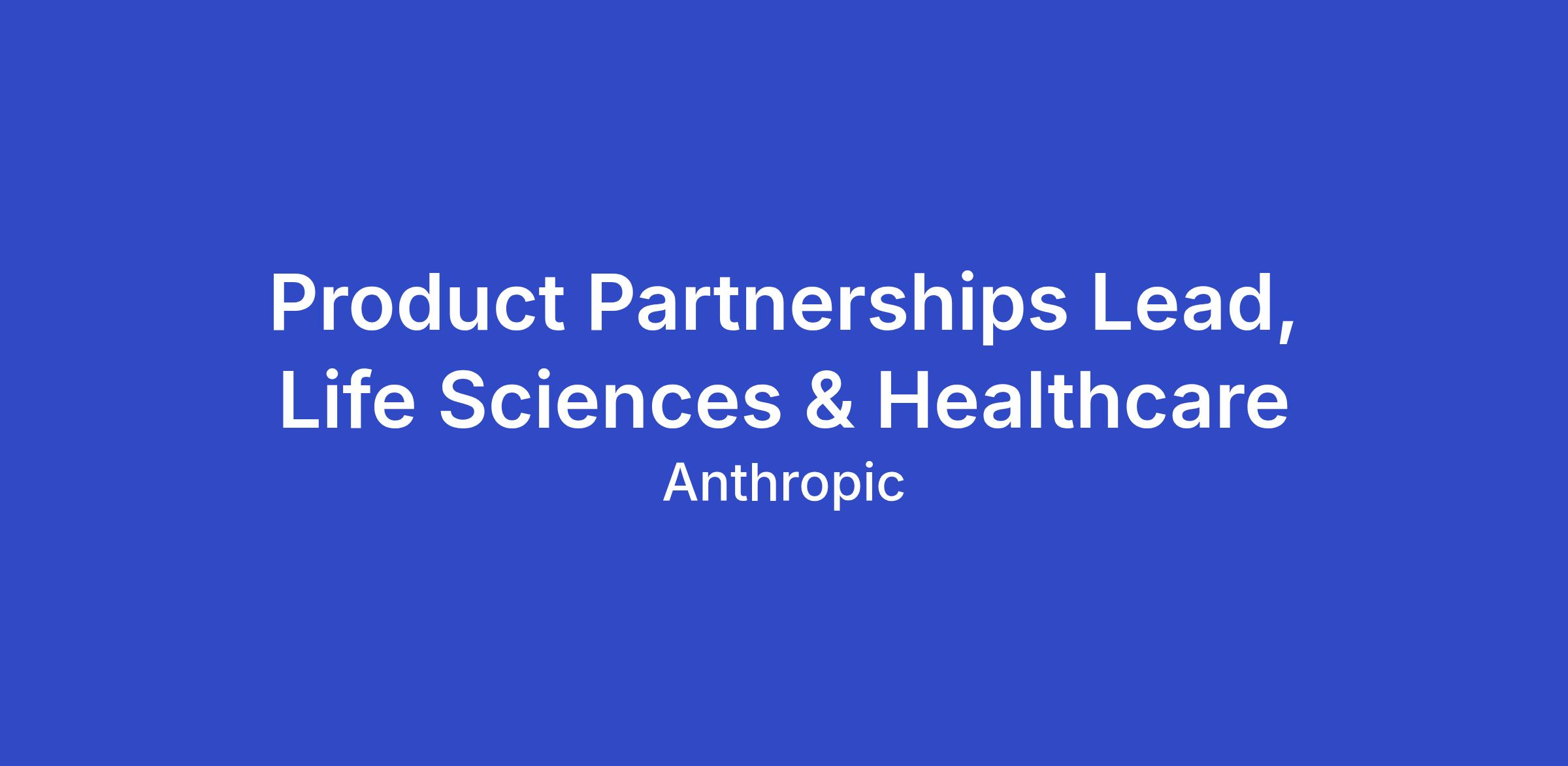 We're looking for a Life Sciences & Healthcare Product Partnerships Lead who has lived inside Life Sciences & Healthcare  industry to own Anthropic's partnership strategy across pharma, biotech, health systems, life science tools, and academic medical centers — identifying the highest-impact organizations to work with, structuring collaborations that make sense for both sides, and serving as our internal expert on the sector.
