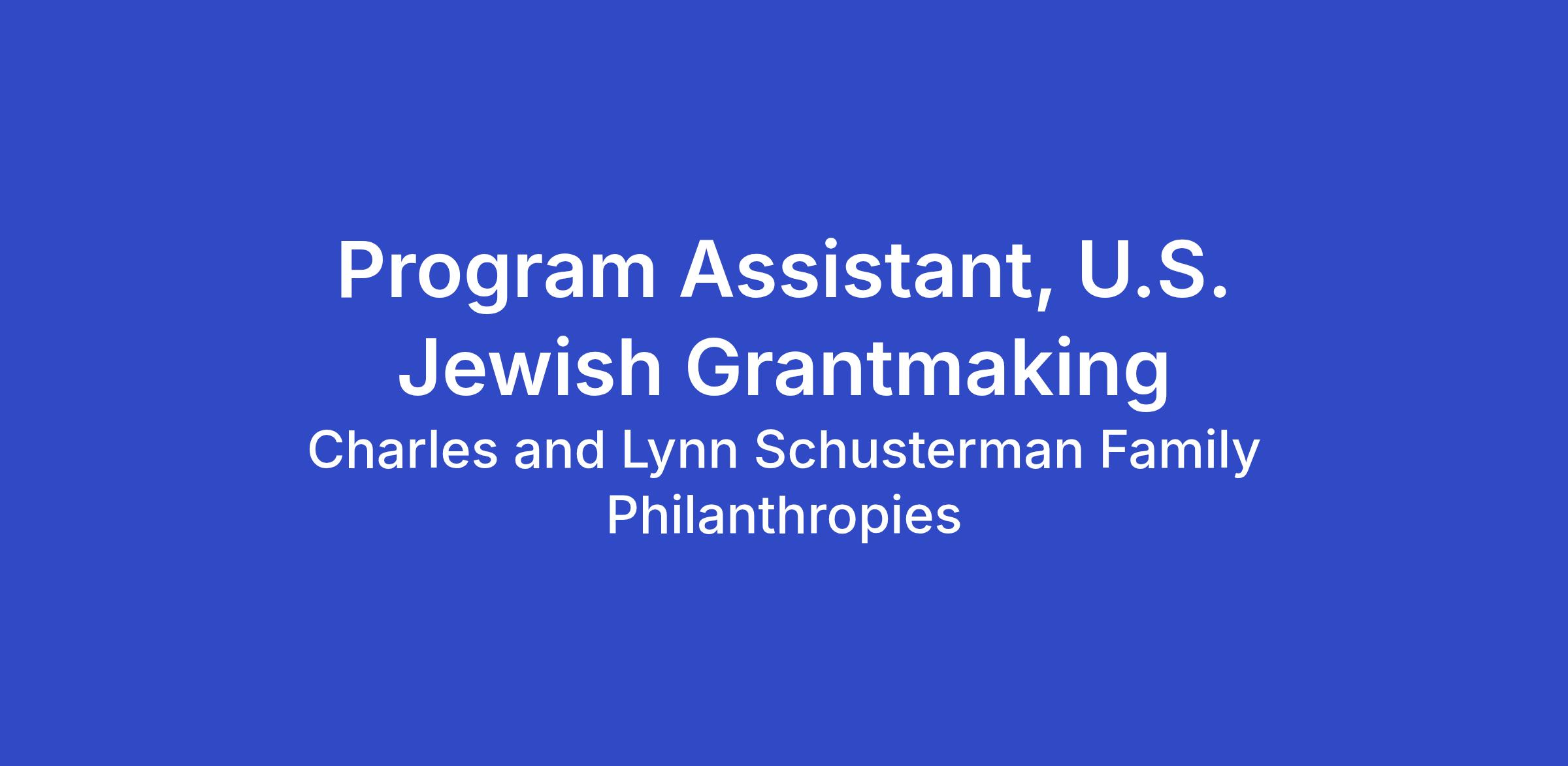 The Program Assistant will have the opportunity to support priority areas of the U.S. Jewish Grantmaking team, including due diligence, research, convenings, special projects, grants management and administration.