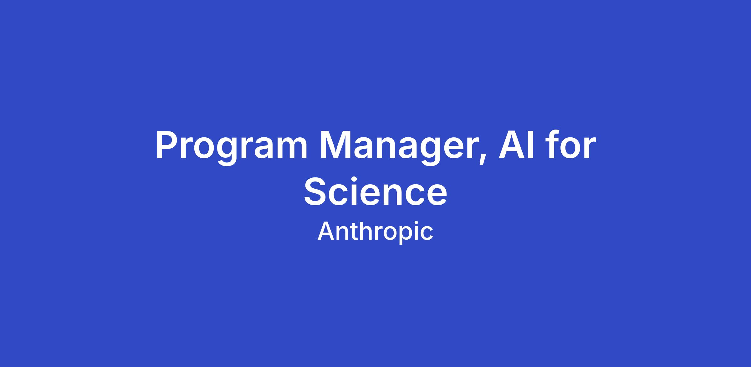 We're looking for a Program Manager to grow our AI for Science Program. You'll build and manage partnerships with individual labs from around the world. This program is the primary way that Anthropic’s life sciences efforts works with individual labs that have new and innovative ideas for how Claude can contribute to a growing set of scientific domains.