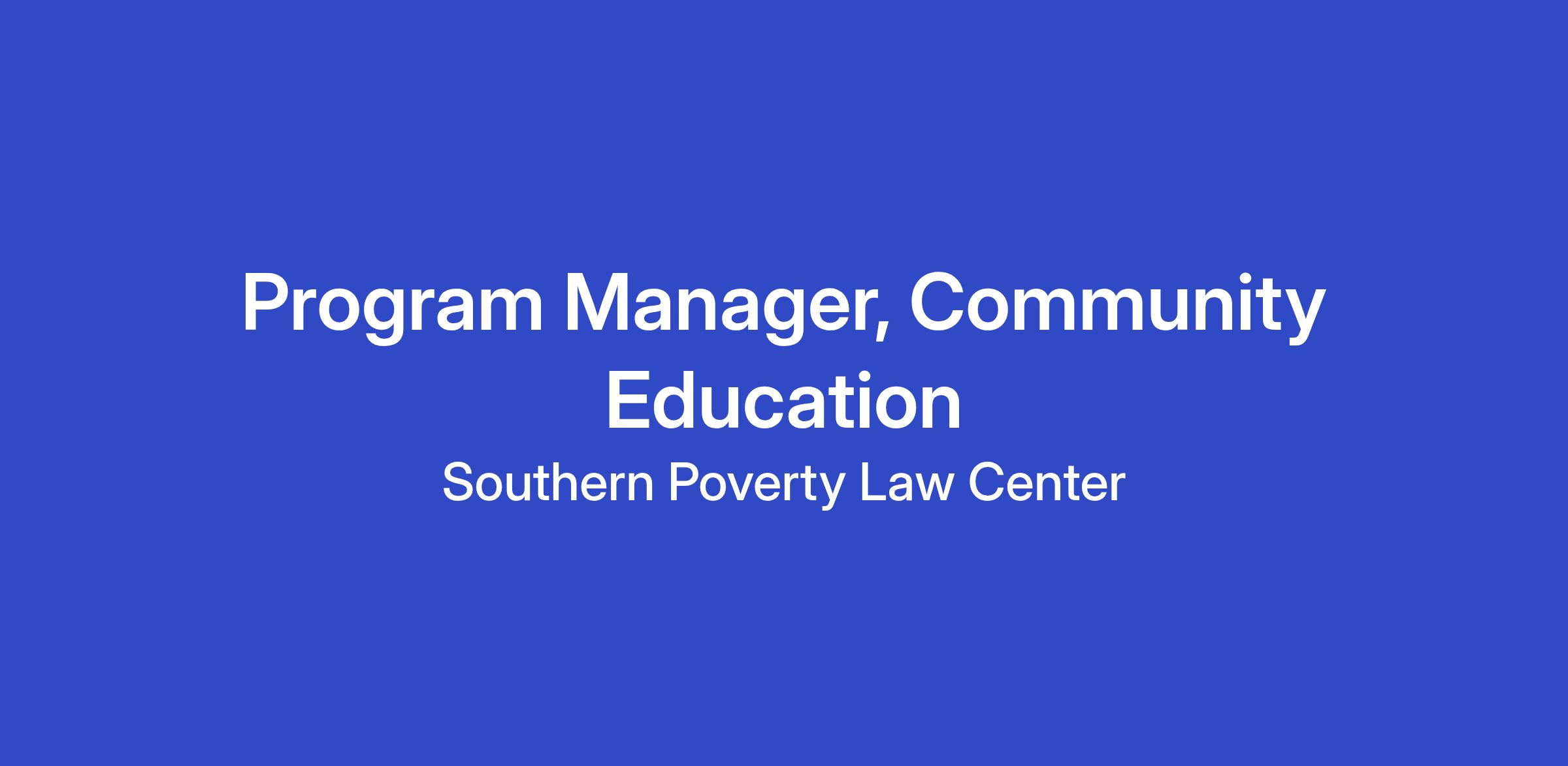 This role centers program design, localizing curriculum development, workshop writing, facilitation, and train-the-trainer leadership to ensure that communities are equipped with sustainable knowledge and skills for collective action. This role collaborates across SPLC departments to translate specialized expertise into accessible community learning opportunities. The Community Education Program Manager serves as a bridge between SPLC's internal knowledge and the lived realities of local communities, ensuring education fuels both advocacy and long-term community power movement for liberation. This position will work 100% of the time in SPLC's five states, and is expected to live in one of SPLC's five states AL, FL, GA, LA, or MS.