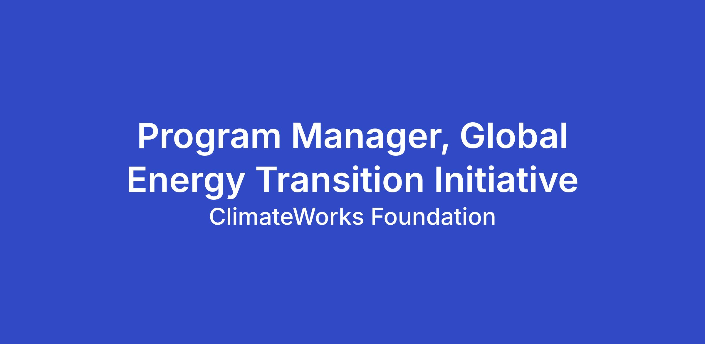 Program Manager, Global Energy Transition Initiative