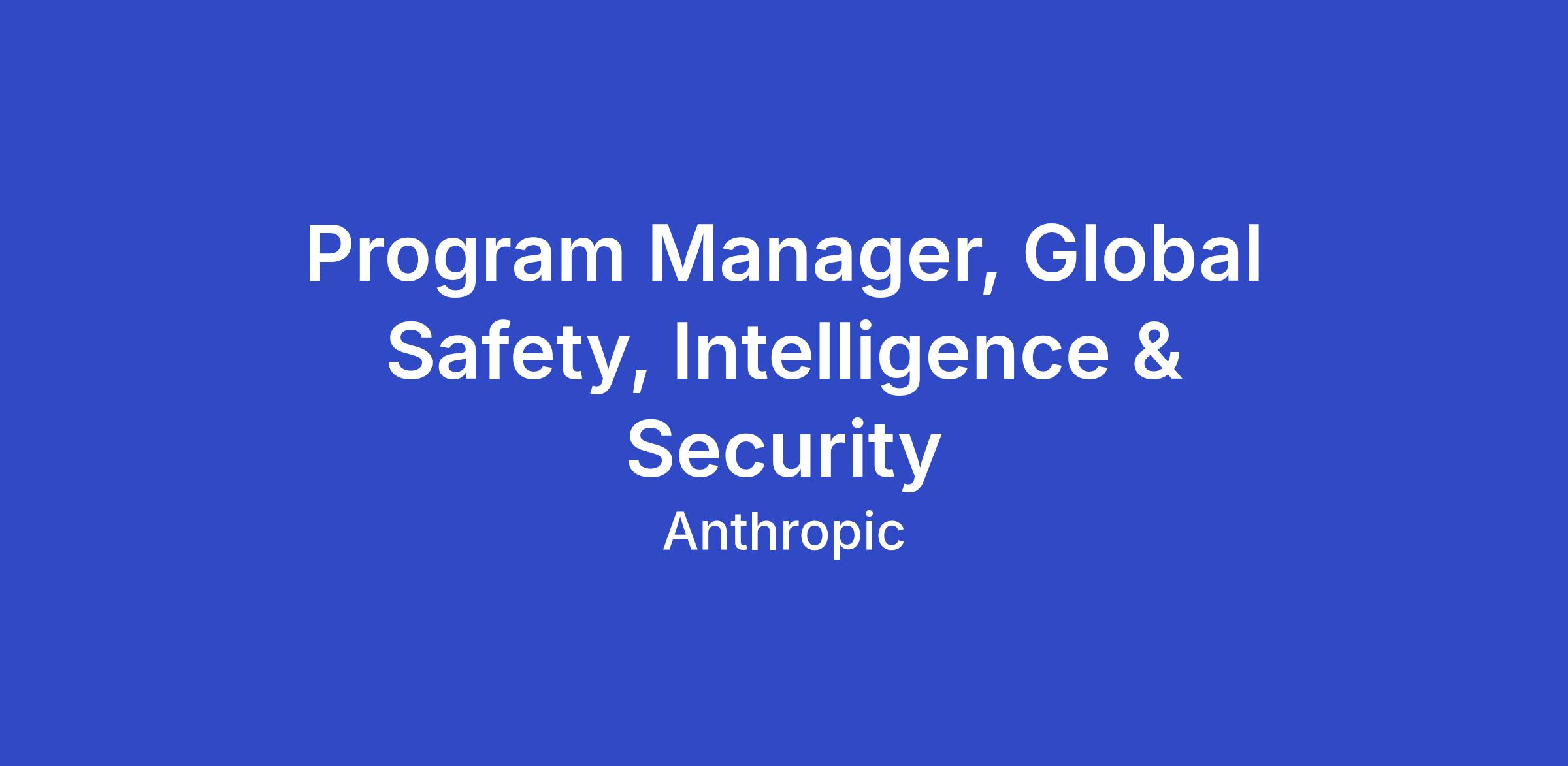 Program Manager, Global Safety, Intelligence & Security