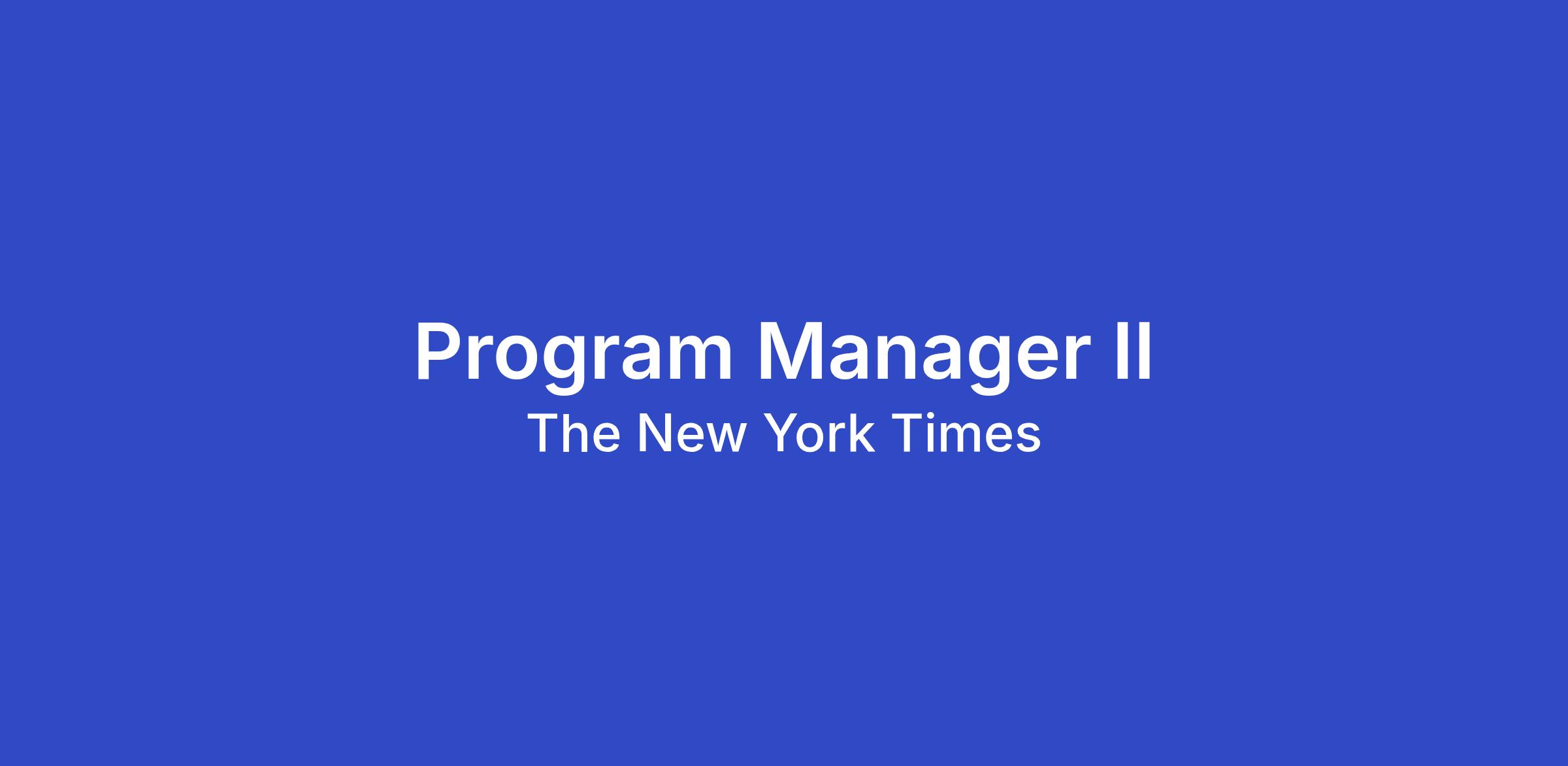 The New York Times is looking for a Program Manager II for its Platforms & Growth portfolio. Platforms exist to provide the power and efficiency of the enterprise, empowering product and feature teams to build and iterate quickly. Our products are used by millions of passionate and engaged users every day and our strategy of providing journalism worth paying for has helped us grow our digital subscription and advertising businesses at the same time.