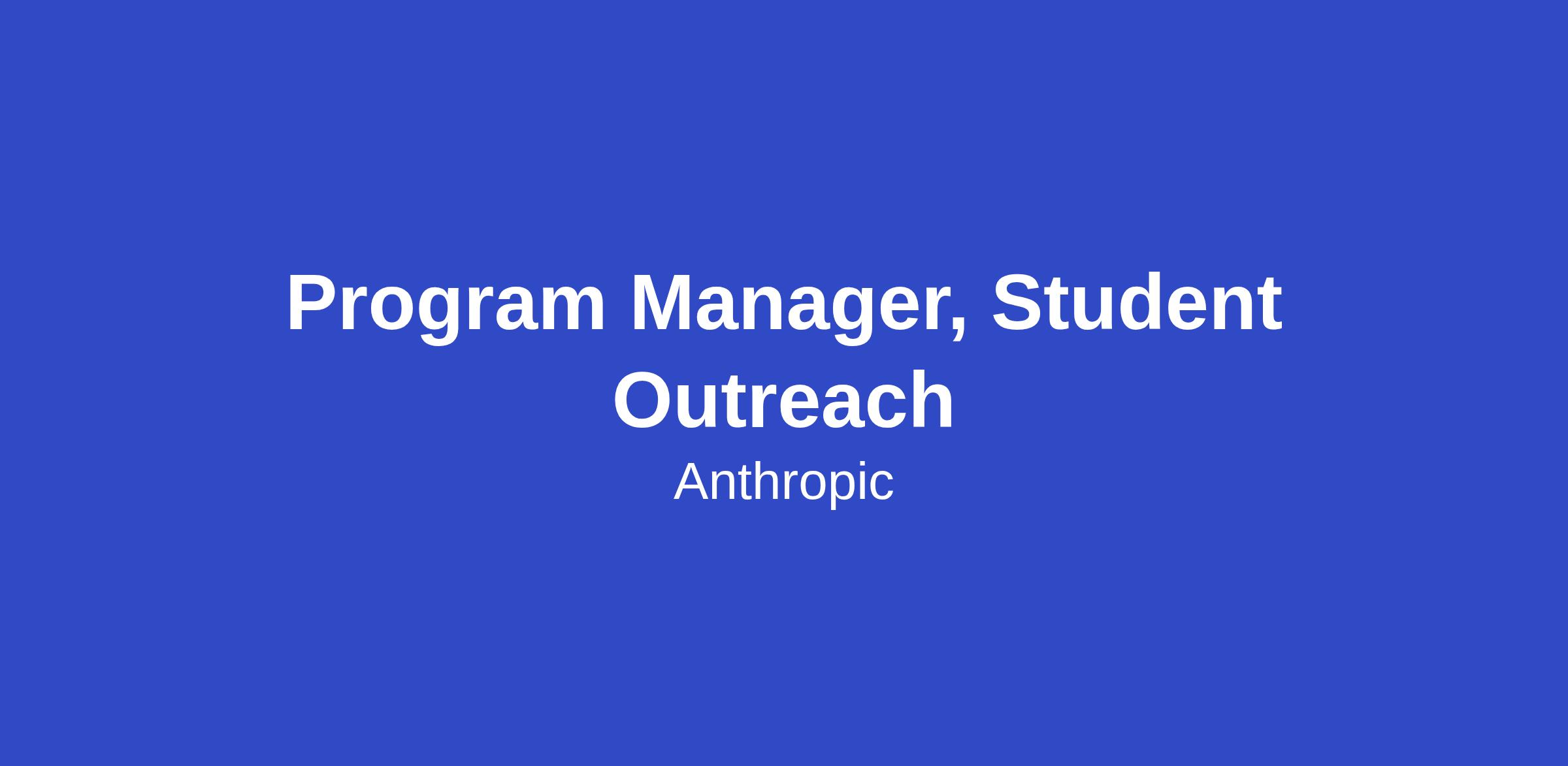Anthropic is seeking a Program Manager to own and drive our student outreach strategy, establishing Claude as the AI platform of choice for the next generation of builders, researchers, and creators at universities worldwide.