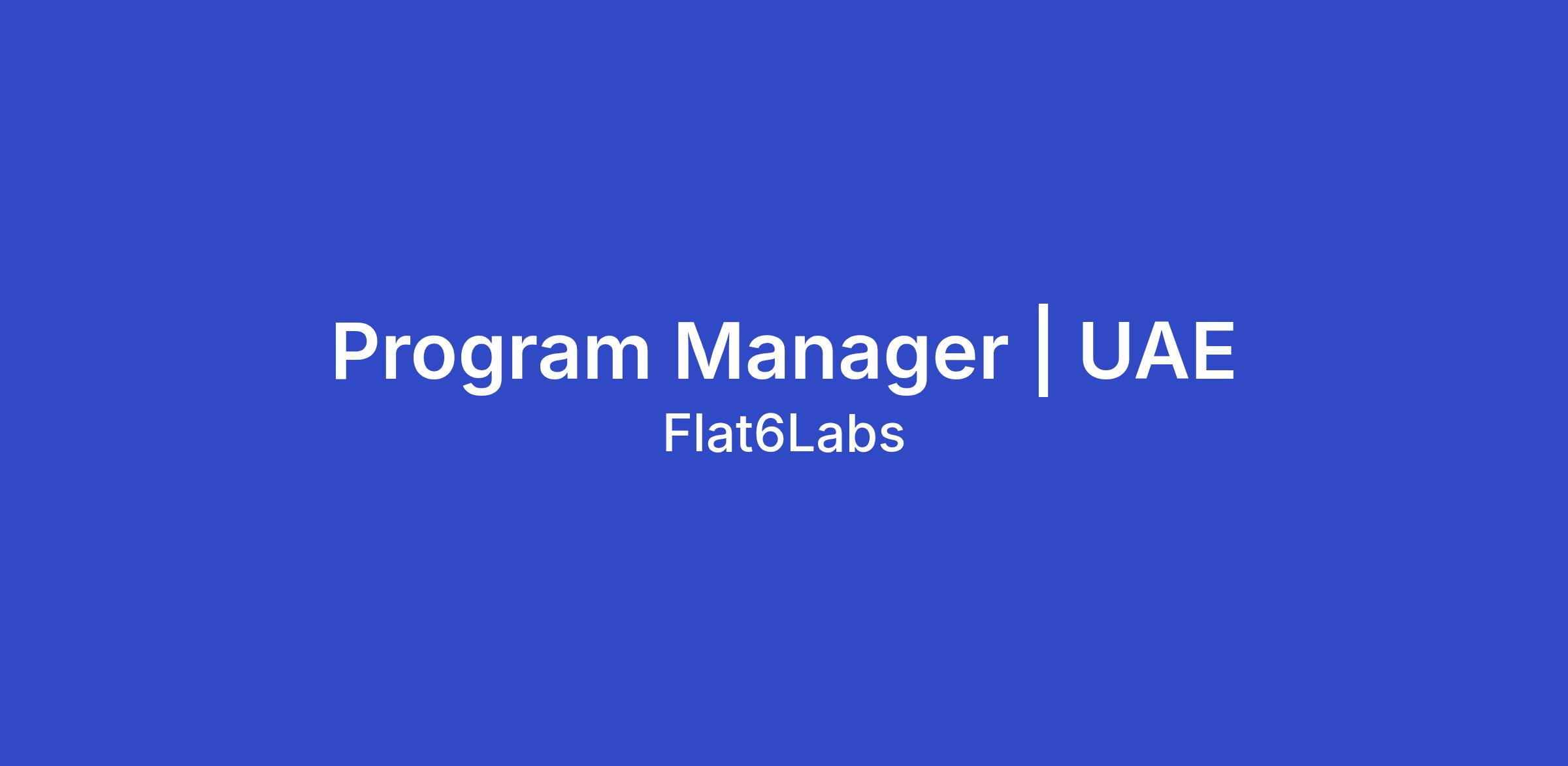 The Flat6Labs Program Manager | UAE oversees the operations and processes of the program’s startups, designing and implementing effective business strategies to position the program as a high-quality, leading ecosystem development initiative both locally and internationally. The role focuses on building relationships, establishing partnerships with local and international stakeholders, and ensuring program excellence.
