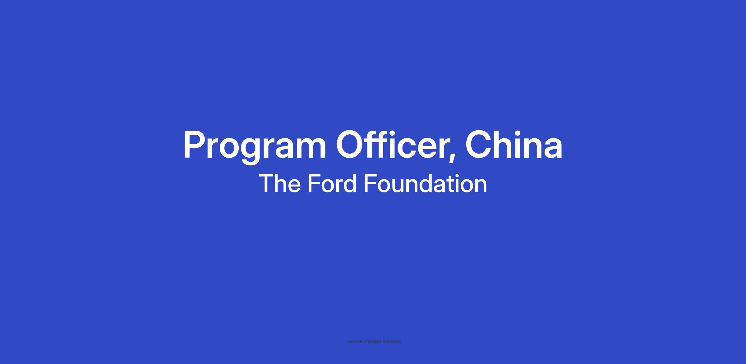 The Ford Foundation's China Office seeks a dynamic and innovative Program Officer to lead and shape the foundation's social justice initiatives in the region. A strong candidate will possess a proven track record and expertise in areas such as China's civil society and philanthropic landscape, its economic development and issues of inequality, China's global engagement (particularly in the Global South), and/or global governance.