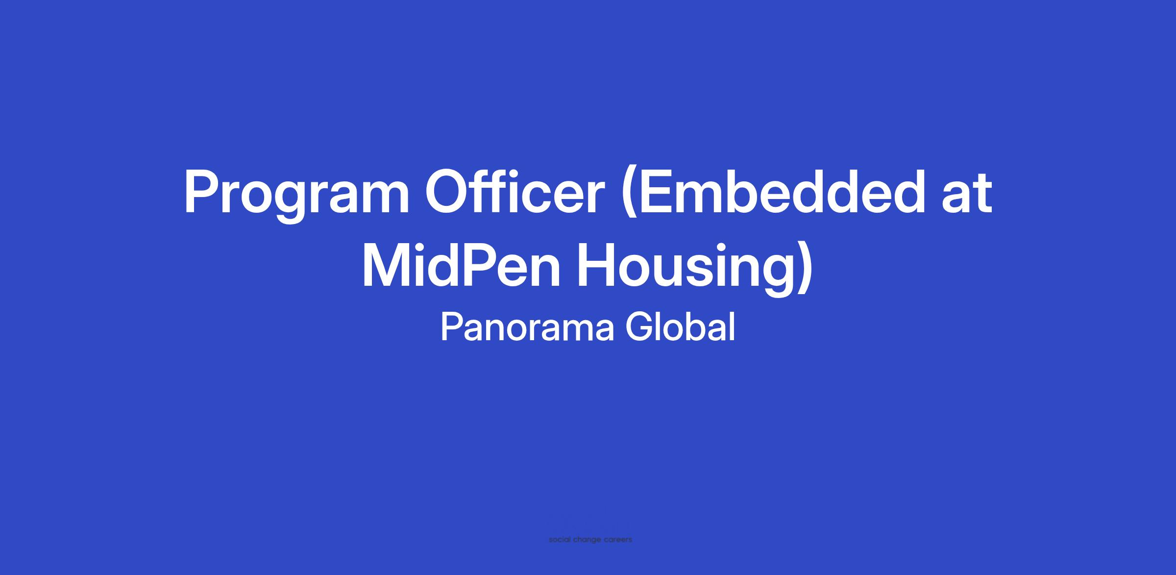 We are seeking a Program Officer (“PO”) to serve as an embedded team member with MidPen Housing. With 145 communities across 12 counties—and more than 10,000 homes for families and seniors with low incomes, and people who have supportive needs—MidPen Housing is one of the largest nonprofit developers, owners, and managers of high-quality affordable housing in Northern California.